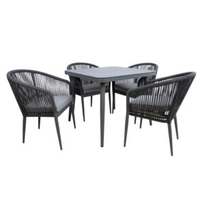 Sodo baldų komplektas DUBLIN stalas ir 4 kėdės, pilkos spalvos