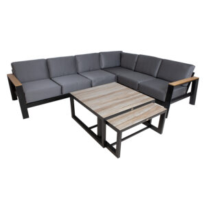 Sodo baldų komplektas FELINO kampinė sofa, 2 stalai, juodos spalvos