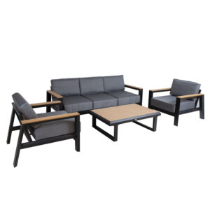 Sodo baldų komplektas FLORIDA stalas, sofa ir 2 foteliai, pilkos spalvos