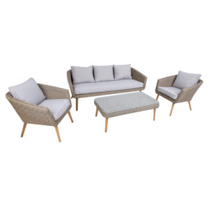 Sodo baldų komplektas NORVEGIJA kavos staliukas, sofa, 2 kėdės