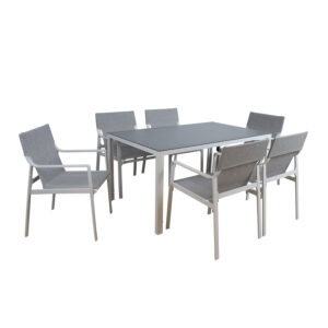 Sodo baldų komplektas OSMAN stalas ir 6 kėdės, šviesiai pilkos spalvos
