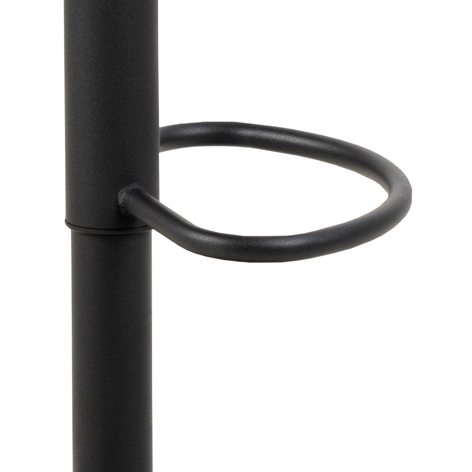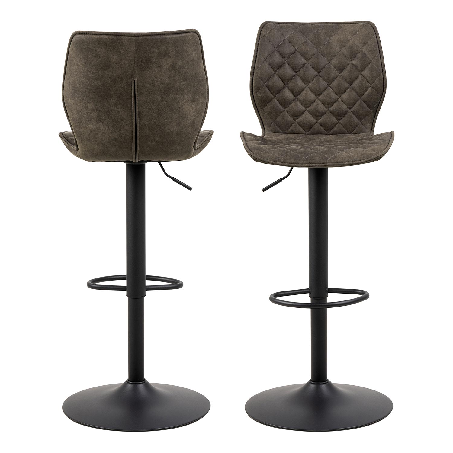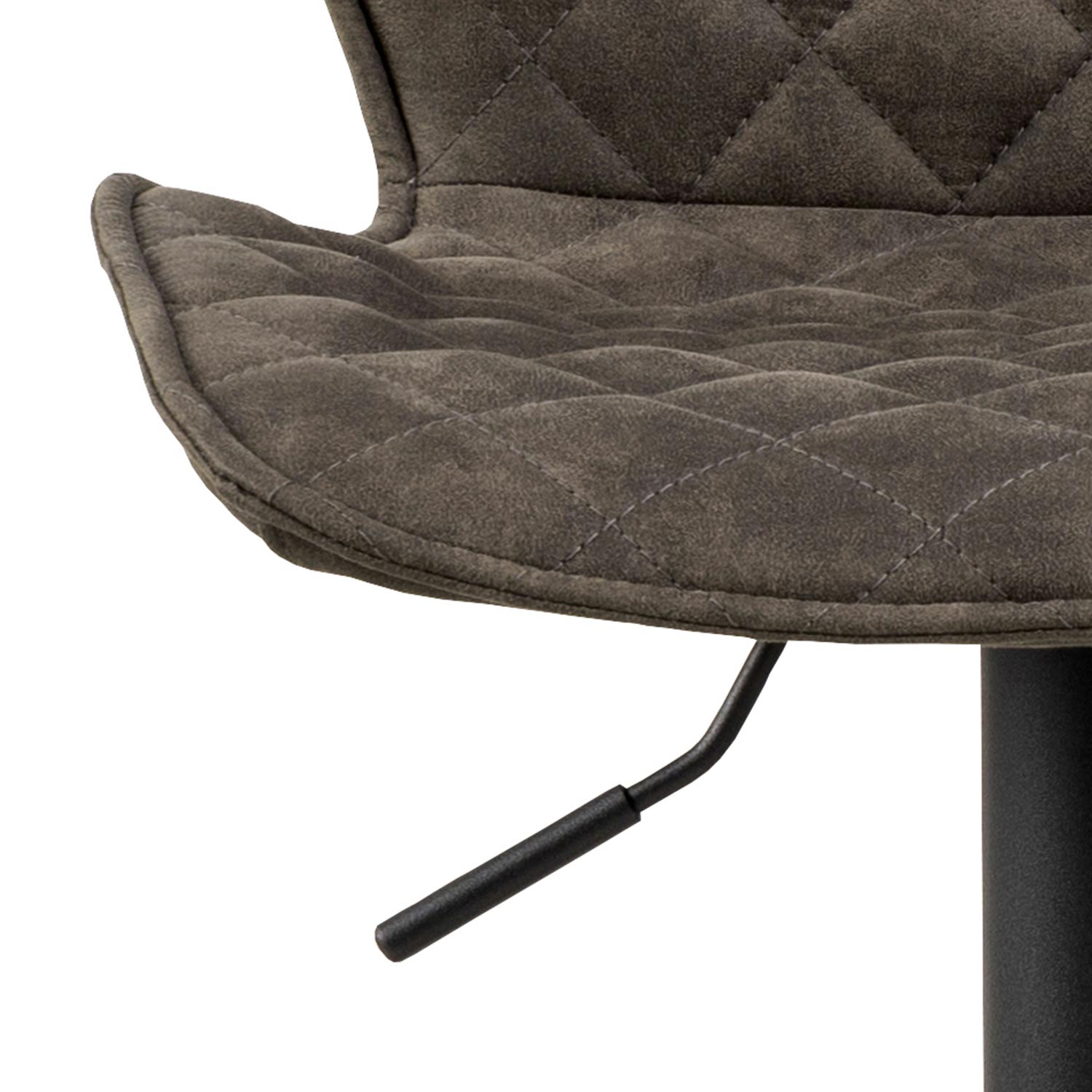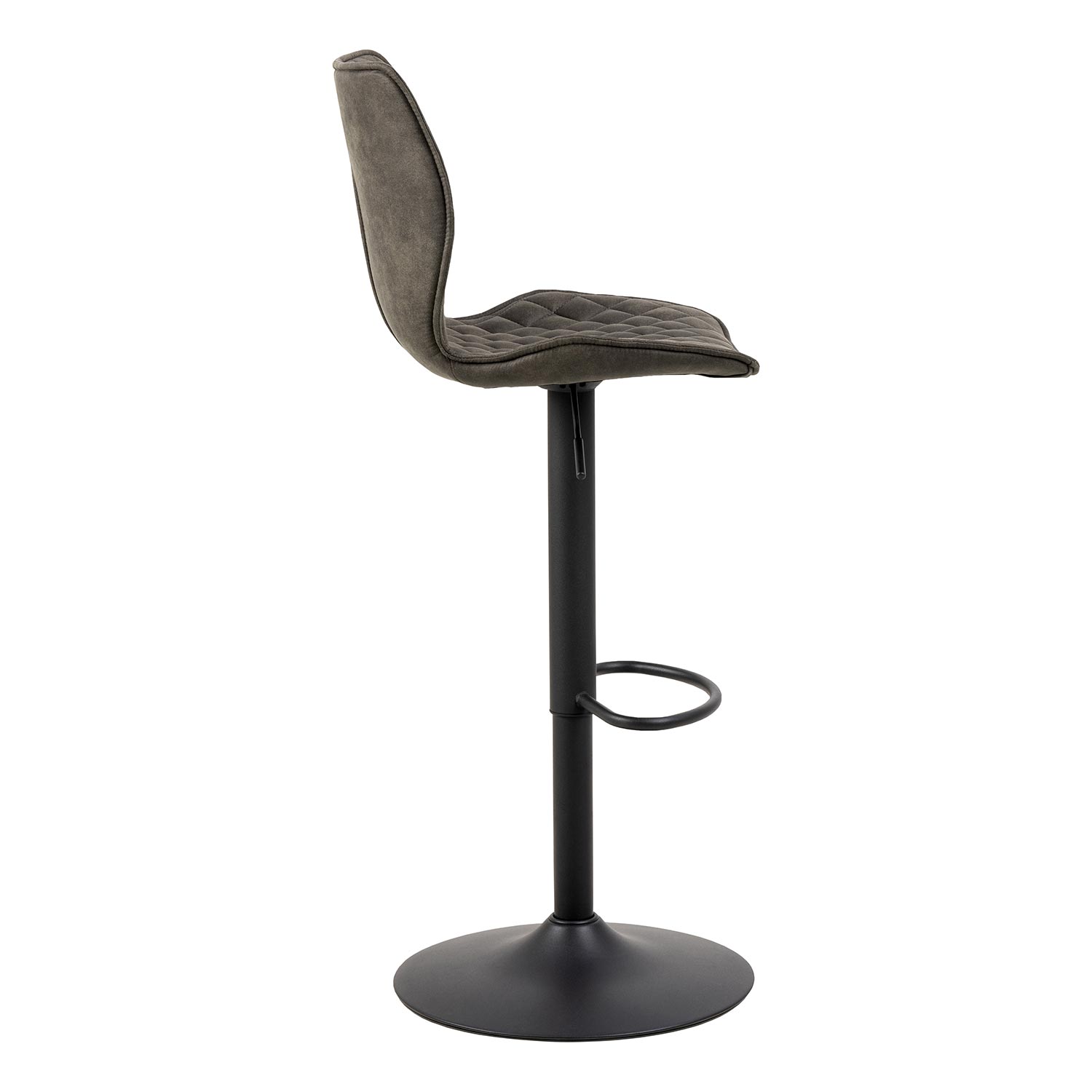 Stilinga baro kėdė, puikiai tinkanti moderniems namams. Minkštas mikropluošto audinys. Dygsniavimas suteikia modernios išvaizdos. Juodais milteliniais dažais dengtas metalinis trobesys su pasukimo funkcija. Dujinio keltuvo dėka sėdynės aukštį galima reguliuoti nuo 62 cm iki 83,5 cm. Kojų atrama patogumui. Matmenys 45,5×50,5xH116 cm.