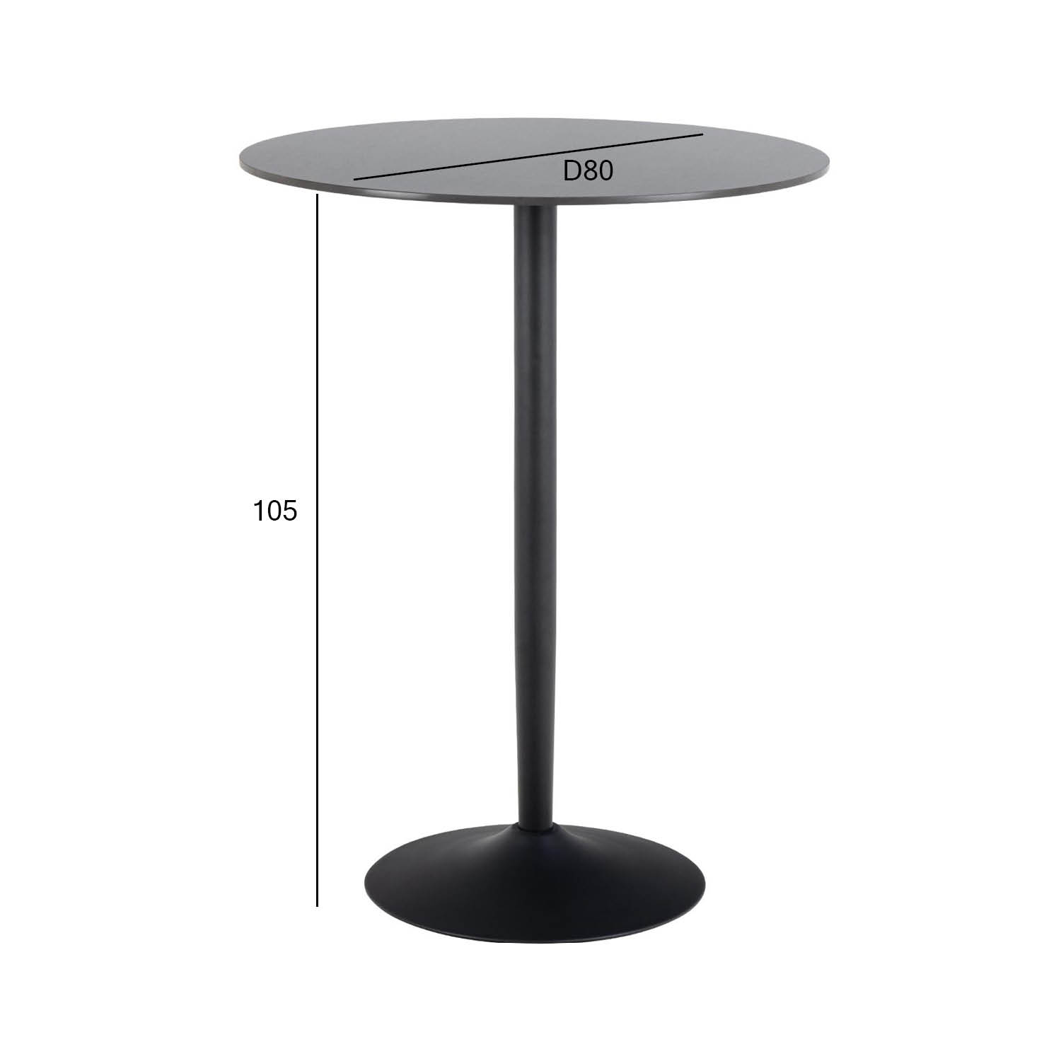 Stilingas baro staliukas šiuolaikiškam interjerui. Apvali forma padeda sukurti daugiau erdvės. Karščiui ir įbrėžimams atsparus keraminis stalviršis. Minimalistinis metalinis trimitinis pagrindas išlaiko vizualų dizaino mastelį. Sukurtas elegantiškos juodos spalvos. Matmenys D80xH105 cm.