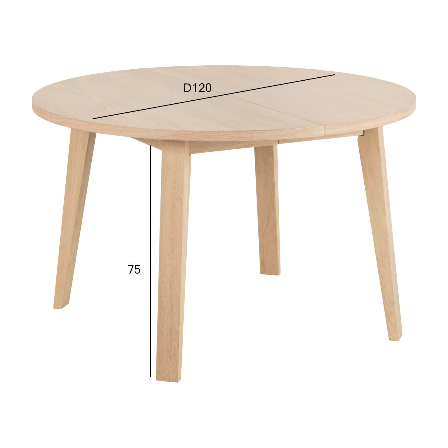 Modernus valgomojo stalas, įkvėptas klasikinio skandinaviško dizaino. Balta pigmentuota alyvuota apdaila. Patogiai talpina 4 žmones. Matmenys D120xH75 cm.