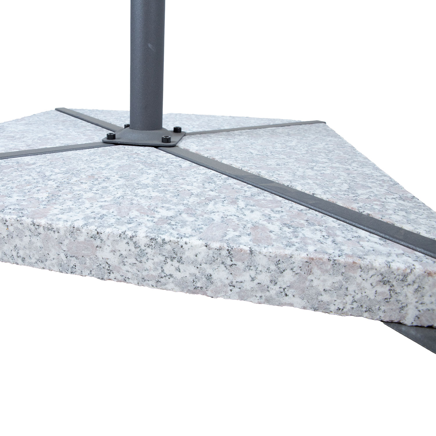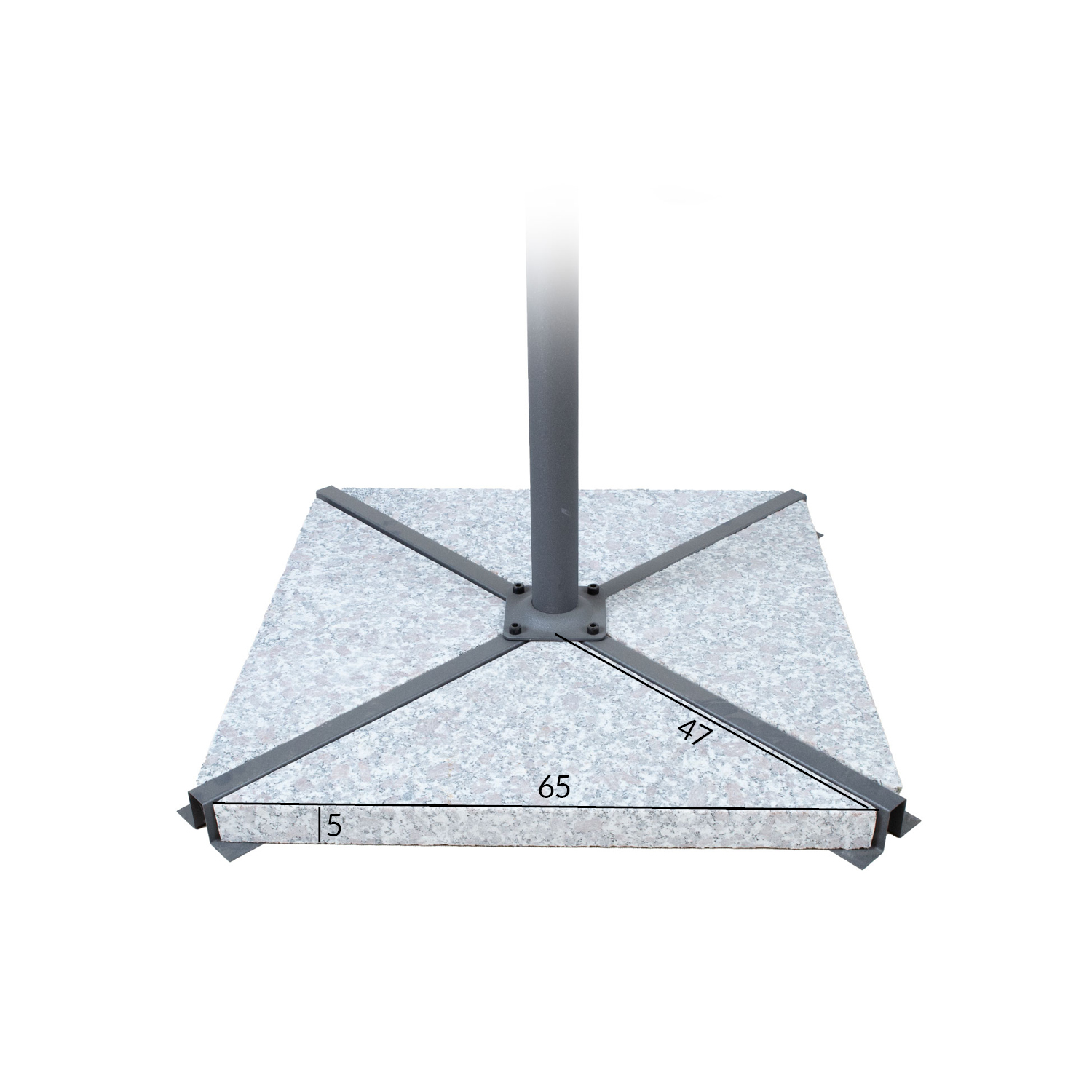Rinkinį sudaro 4 trikampiai granito akmenys. Vieno akmens matmenys 47x47xH5cm/14kg.