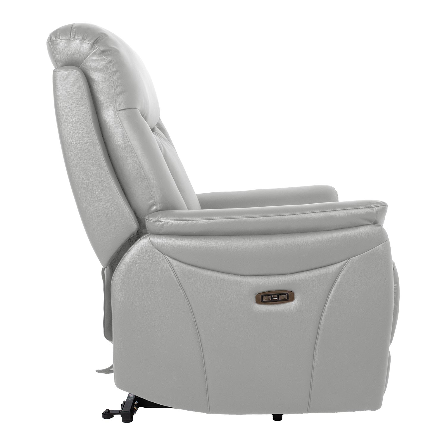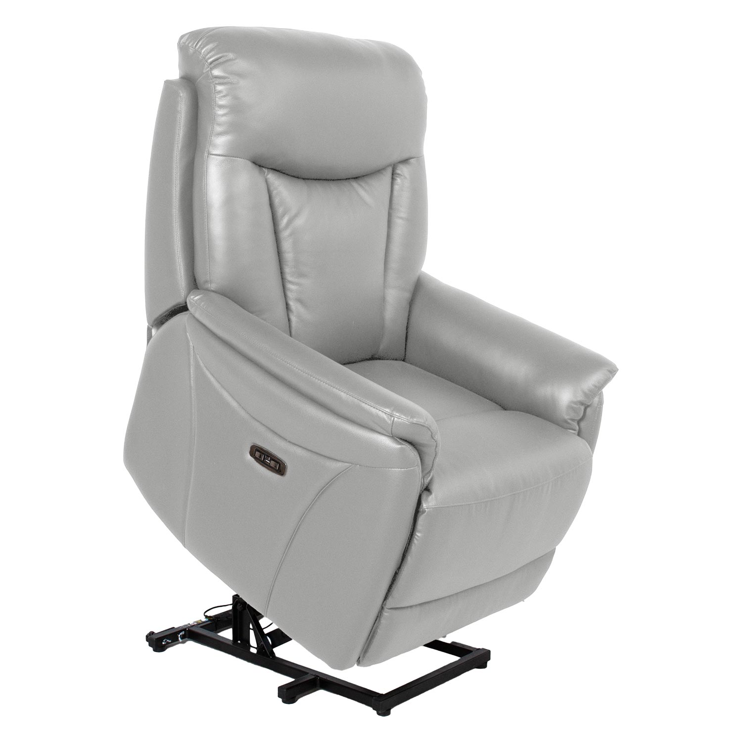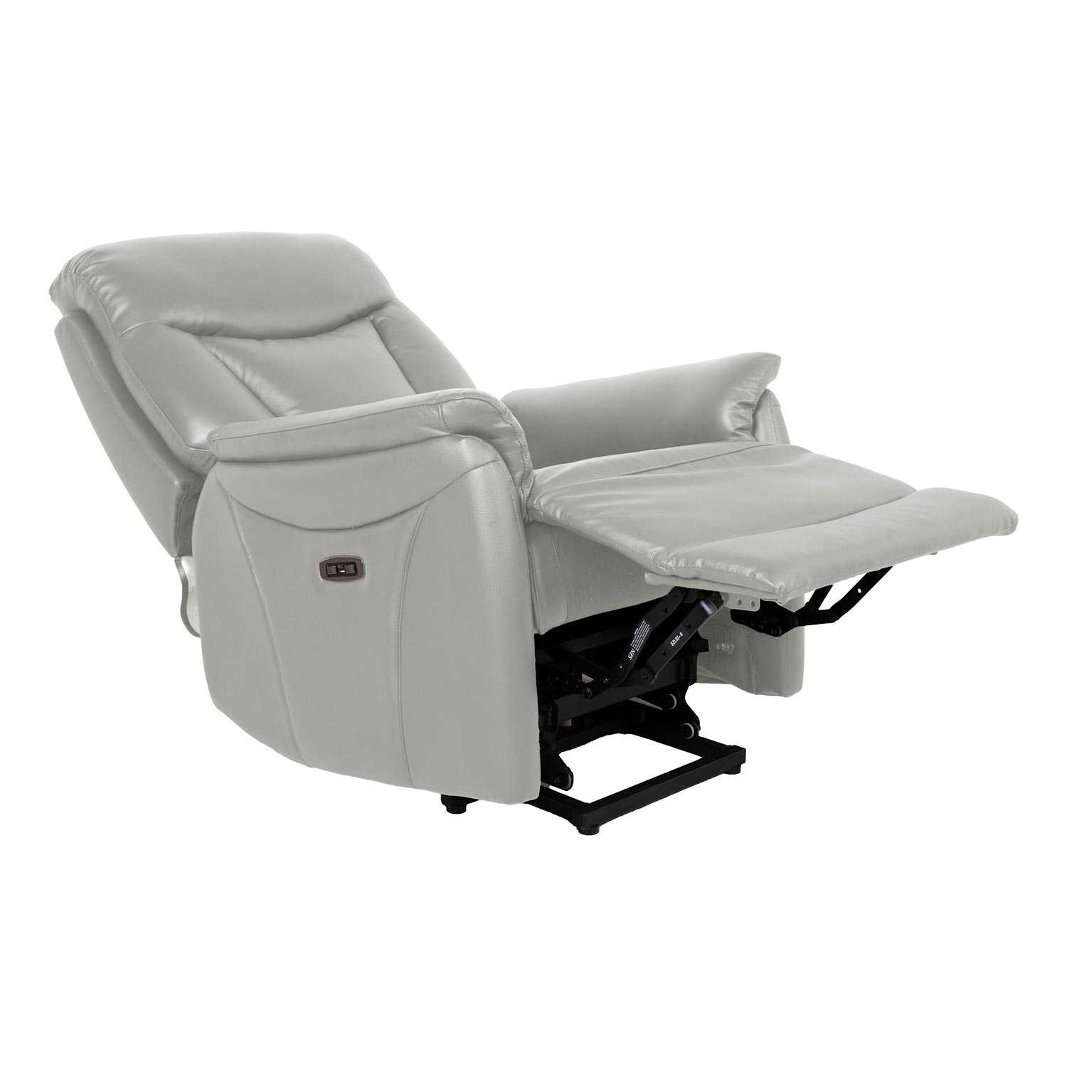 Atlenkiamas fotelis BALDWIN su elektriniu pakėlimo mechanizmu, smėlio spalvos oda