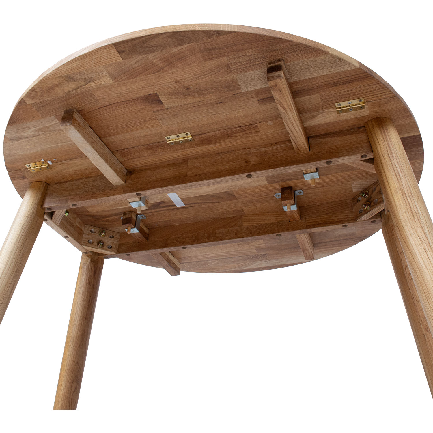 Apvalus sulankstomas stalas iš medžio masyvo yra funkcionalus ir praktiškas sprendimas mažesniam kambariui įrengti arba naudoti kaip papildomą stalą. Centrinė stalo stalviršio plokštė yra 40 cm pločio, kiekvienoje pusėje yra po 25 cm pločio atlenkiamą dalį. Jei stalo paviršius nėra visiškai išnaudojamas, vieną arba abi sulankstomas plokštes galima nuleisti.