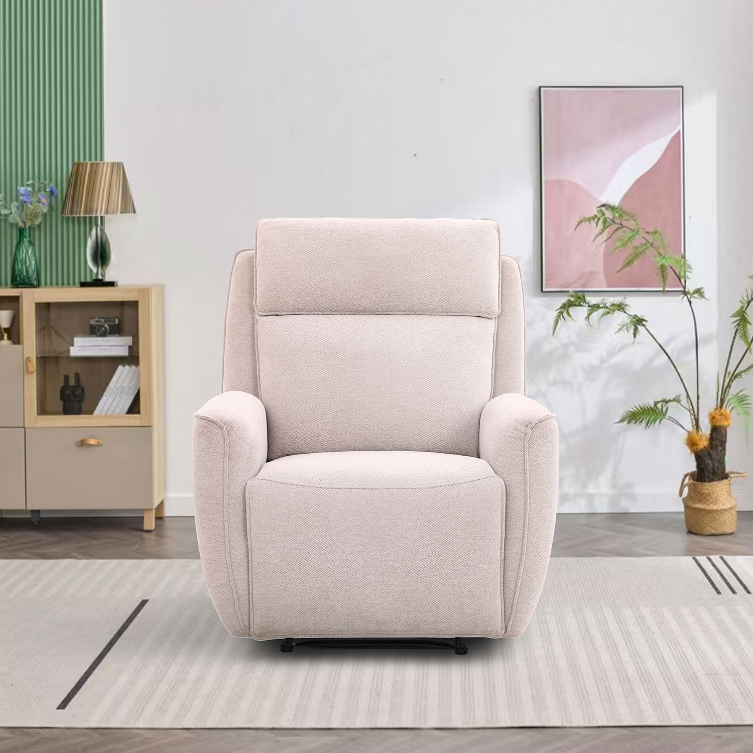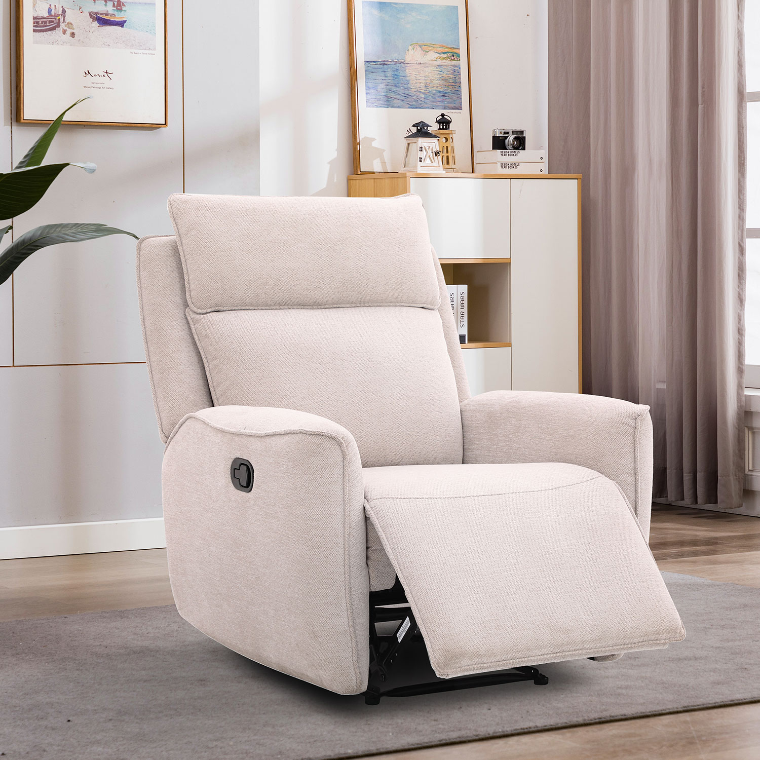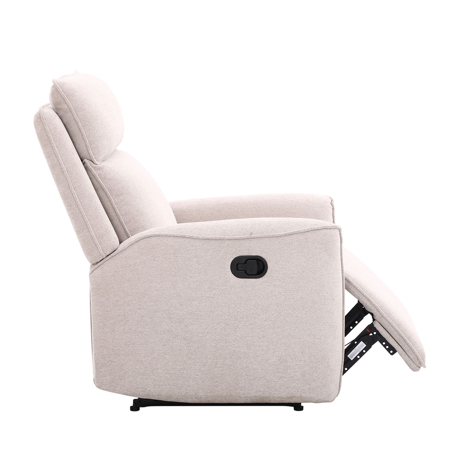 The position of the backrest and footrest of the recliner type armchair can be changed using a manual mechanism.