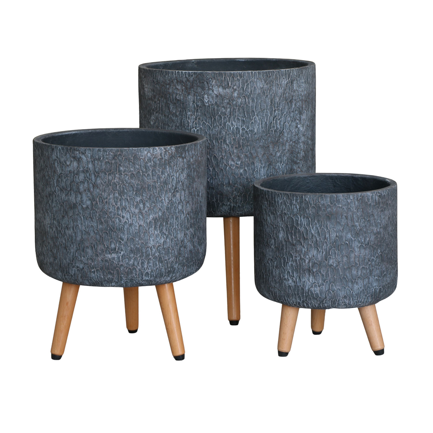 Augalų laikiklis SKY EDEN D37xH52,3 cm, tamsiai pilkos spalvos, su medinėmis kojelėmis
