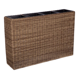 Gėlių vazonas WICKER D28xH59cm, tamsiai rudos spalvos. Metalinis vazonas karkasas padengtas plastikiniu pynimu. Vidinio plastikinio maišelio matmenys D21xH21cm. Vidinis vazonas neturi skylės.