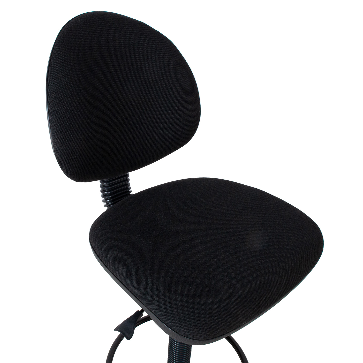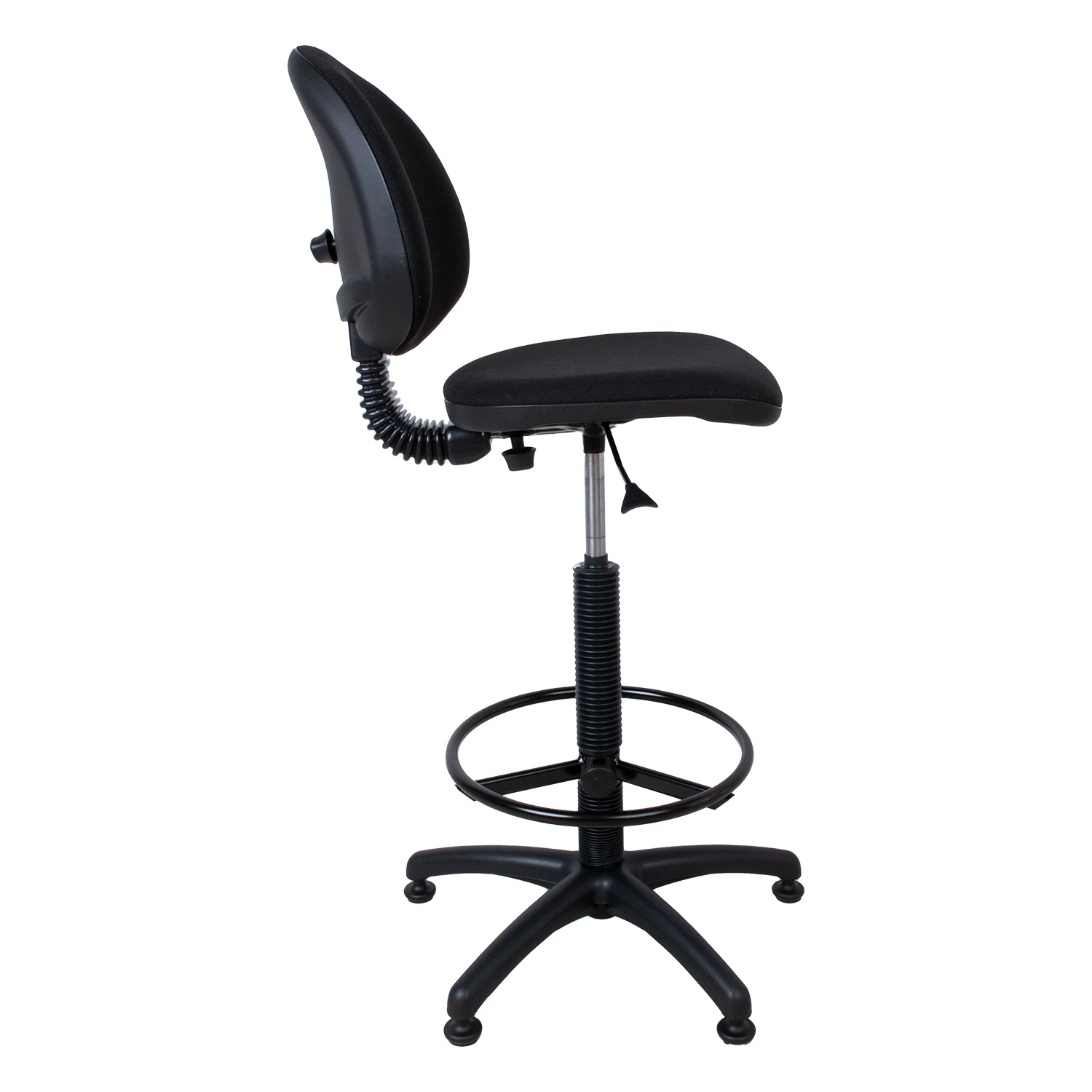Aukšta rašomojo stalo kėdė SMART juoda. Sėdynė ir atlošas aptraukti audiniu, 100 % sintetinis pluoštas, 260 g/m², 30 000 Martindale. Sėdynės aukštis reguliuojamas droseliais. Reguliuojamas atlošo aukštis. Kojų atrama su centriniu užvalkalu. Reguliuojamas kojų atramos aukštis. Pėdų atrama pagaminta iš juodo plastiko, D64,5 cm. Sėdynės aukštis 56,5-80 cm, atlošo aukštis 37 cm. Gaminio matmenys 46×46,5xH109-132,5cm. Kėdės svorio riba 110 kg.