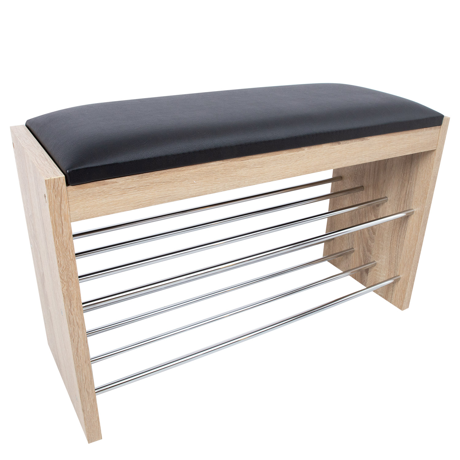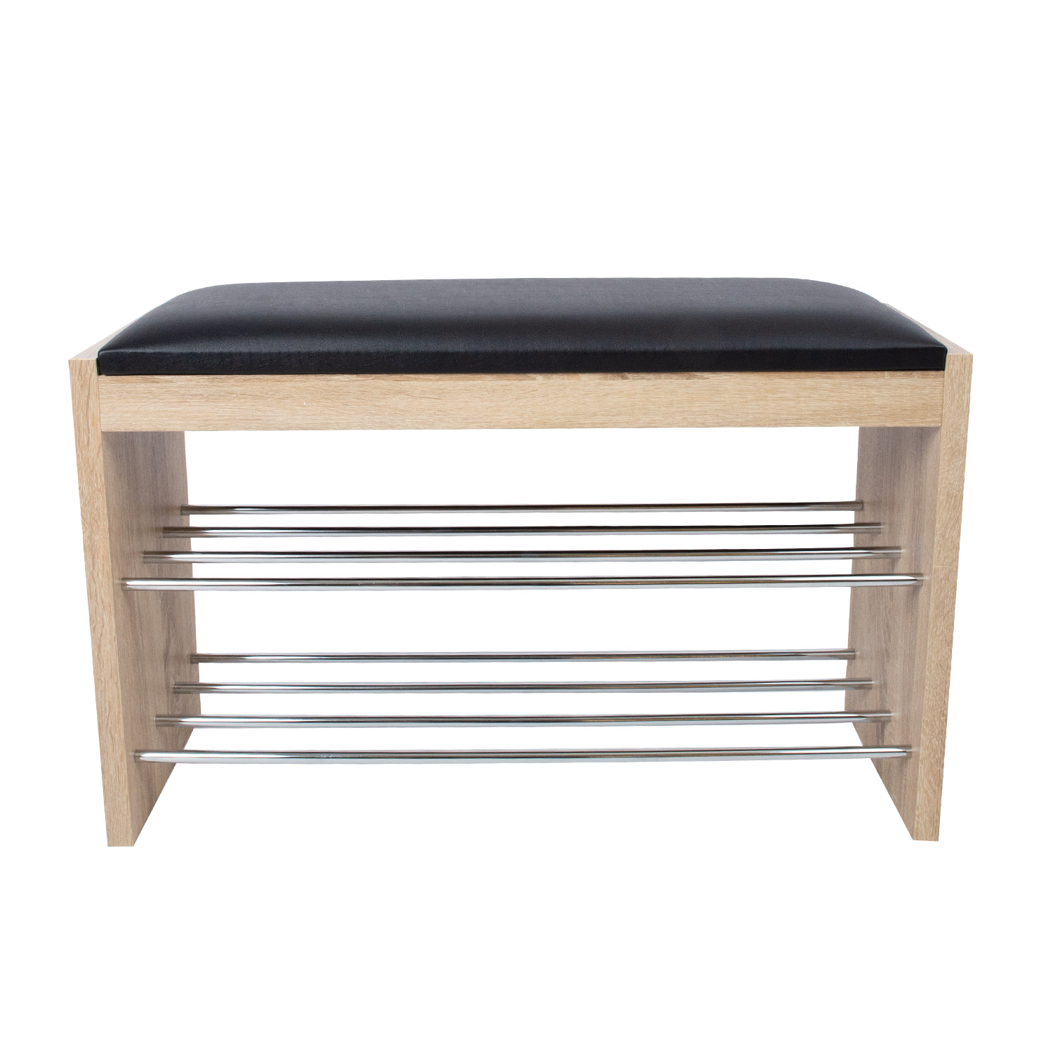 Pedalų lentyna rožinė BENO 79,5x30xH50cm, šviesus ąžuolas. Lentynos rėmas pagamintas iš laminato su ąžuolo lukštu. Sėdynė lengvai apmušta ir padengta juodu PVC. 2 chromuotos plieninės vamzdinės lentynos po sėdyne.