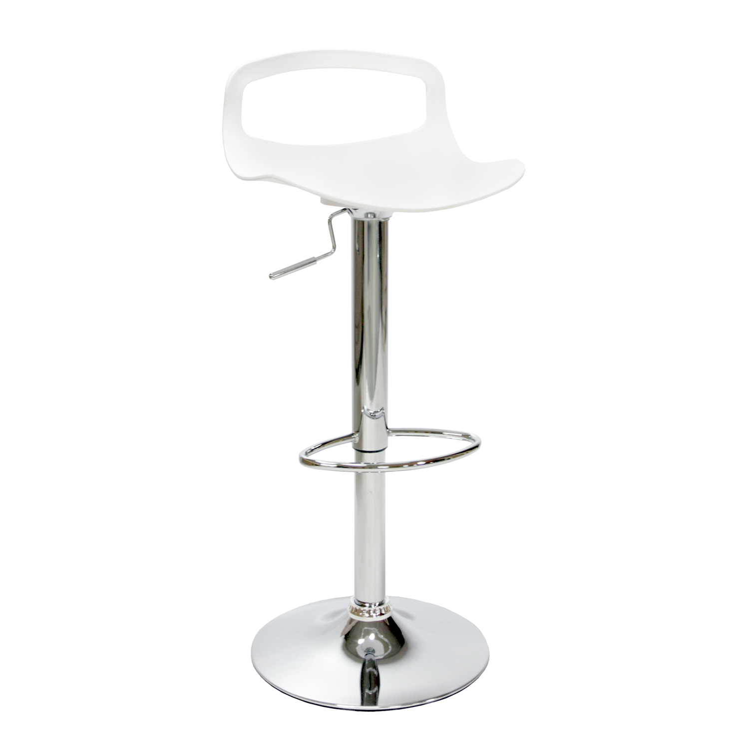 Baro kėdė ANDY 39x35xH77,5-98cm, sėdynė: plastikas, spalva: balta, kojelė: chromas. Rėmo spalva: chromuotas. Mechanizmas ir nustatymai: sėdynės aukštis reguliuojamas dujiniu dangteliu. Matmenys: sėdynės aukštis 60-80 cm, sėdynės gylis 35 cm, sėdynės plotis 39 cm. Papildoma informacija: leistinas svoris 100 kg.