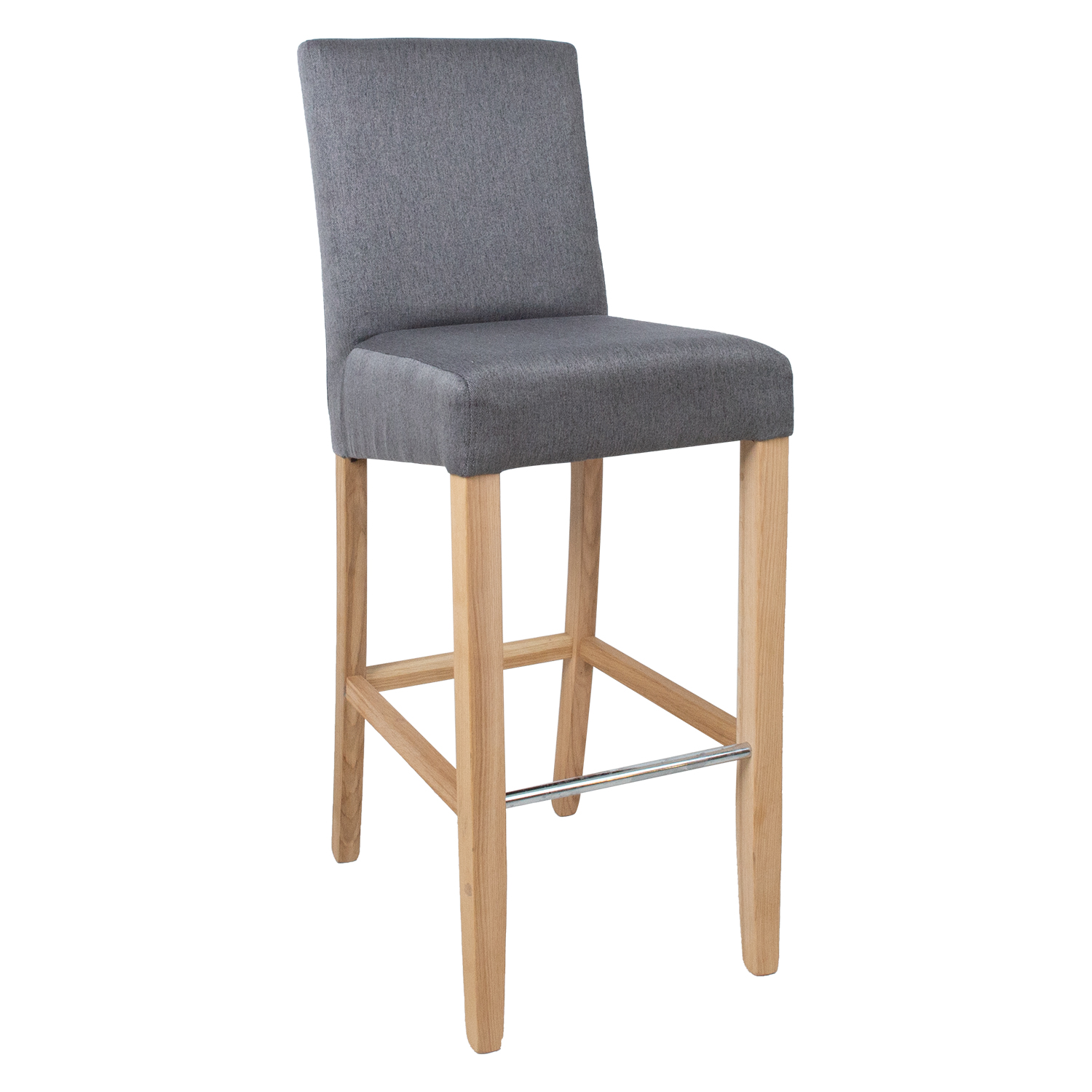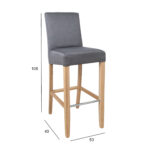 Baro kėdė BOSTON 53x40xH108cm, pilka. Audiniu apmušta sėdynė, šviesaus ąžuolo kojos.