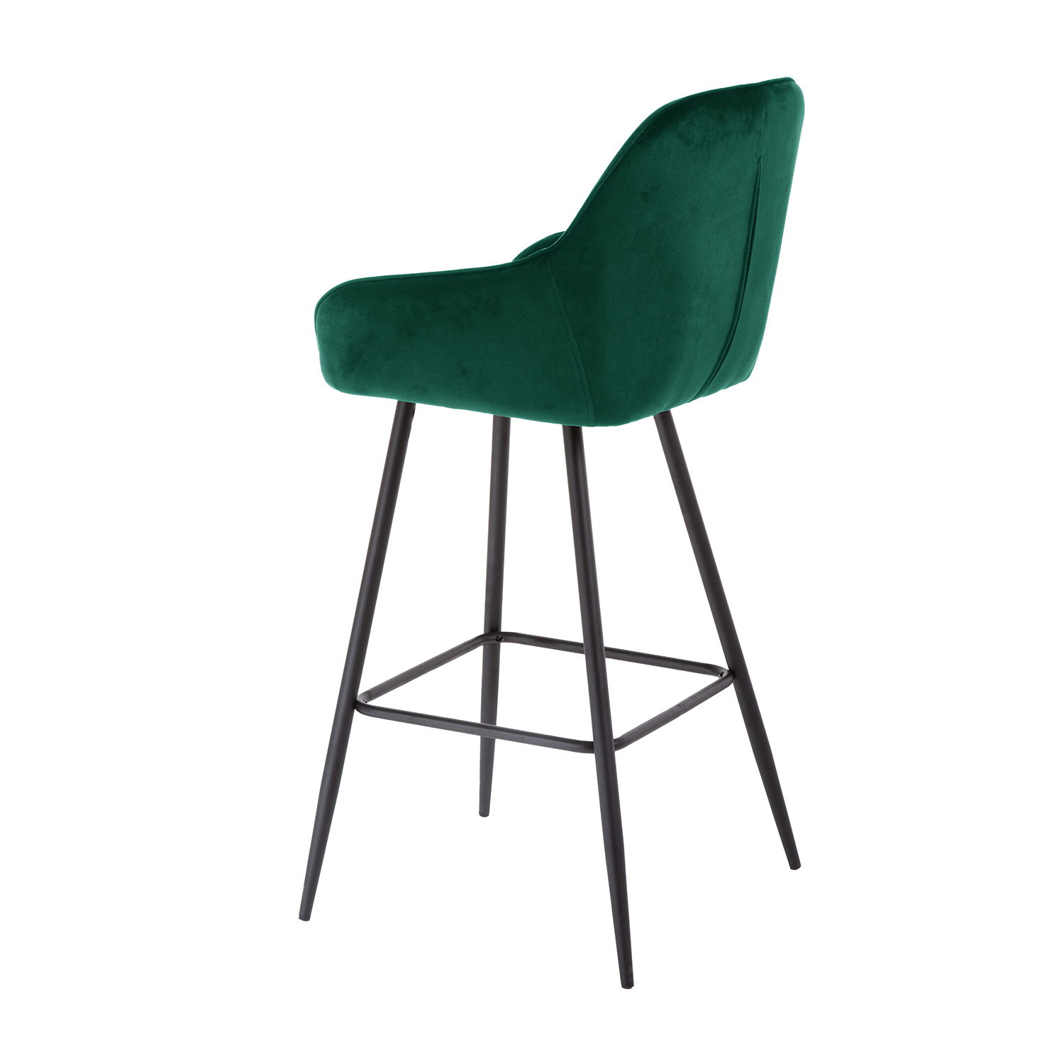 Baro kėdė BRITA, žalias akmuo. Sėdynė pagaminta iš lenktos patogios formos faneros, lengvai apmušta ir aptraukta aksominiu audiniu. Užvalkalo medžiaga: 100 % poliesteris, 260 g/m². Martindale 25 000. Kėdės kojos ir pagrindo rėmas pagaminti iš metalo ir padengti juoda milteline danga. Bendrieji kėdės matmenys: 53x55xH109 cm, sėdimosios dalies plotis 38 cm, sėdimosios dalies gylis 43 cm, sėdimosios dalies aukštis 75 cm. Atlošo aukštis 37 cm, kojų atramos aukštis 29 cm. Ribinis svoris 120 kg.