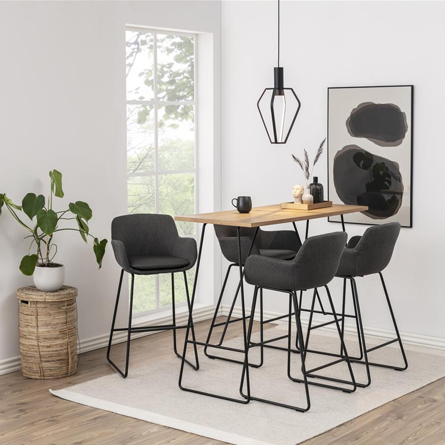 Baro kėdė LISA 52x53xH100cm, tamsiai pilka, kojos: juodas metalas. Sėdynės aukštis 76 cm, sėdynės audinys: Town audinys tamsiai pilka 33. Ribinis svoris: 110 kg.