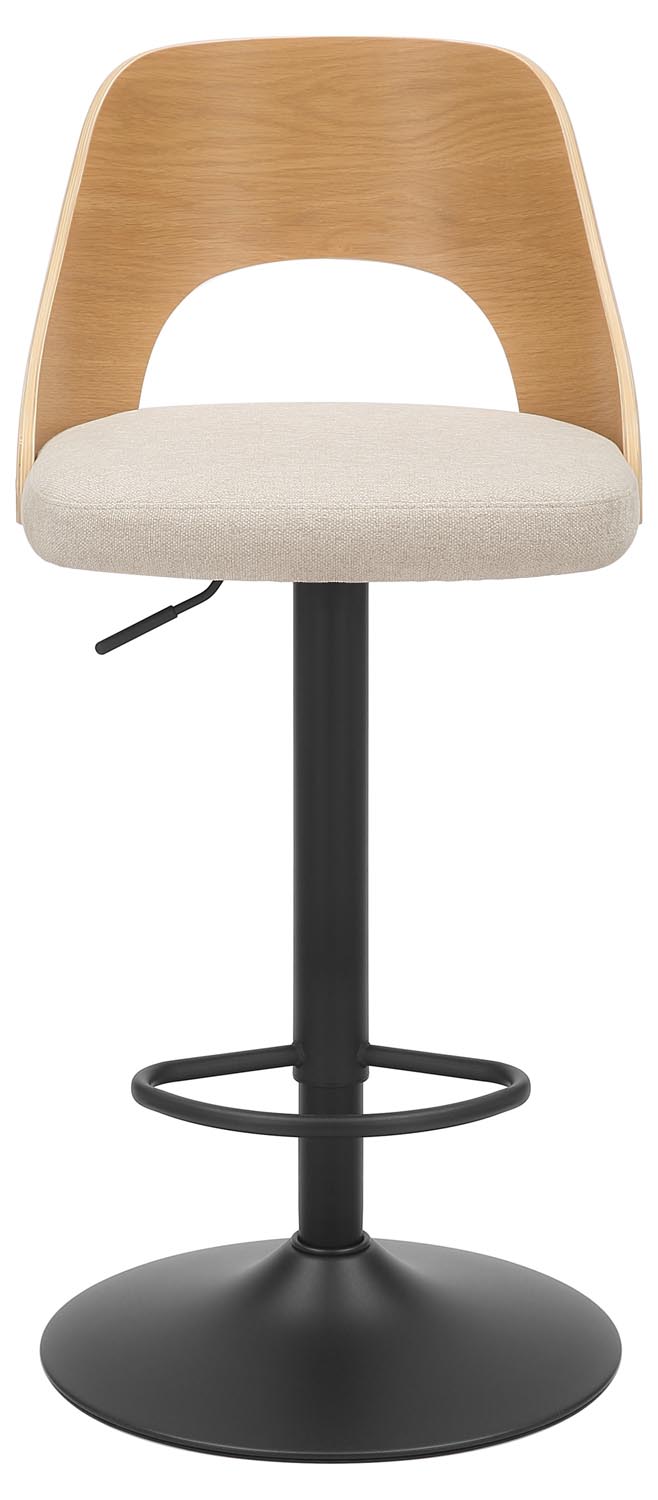 Reguliuojamo aukščio baro kėdėje dera šiuolaikiška išvaizda ir klasikinė skandinaviška estetika. Lakuotas ąžuolas su užapvalinta atvira nugarėle ir šenilu aptraukta sėdynės pagalvėle. Pagrindas turi atramą kojoms ir pasukimo funkciją patogiam sėdėjimui. Pagrindas pagamintas iš milteliniu būdu dažyto plieno. Dujinis keltuvas leidžia reguliuoti sėdynės aukštį nuo 62 iki 84 cm. Matmenys 47×50,5xH113 cm.
