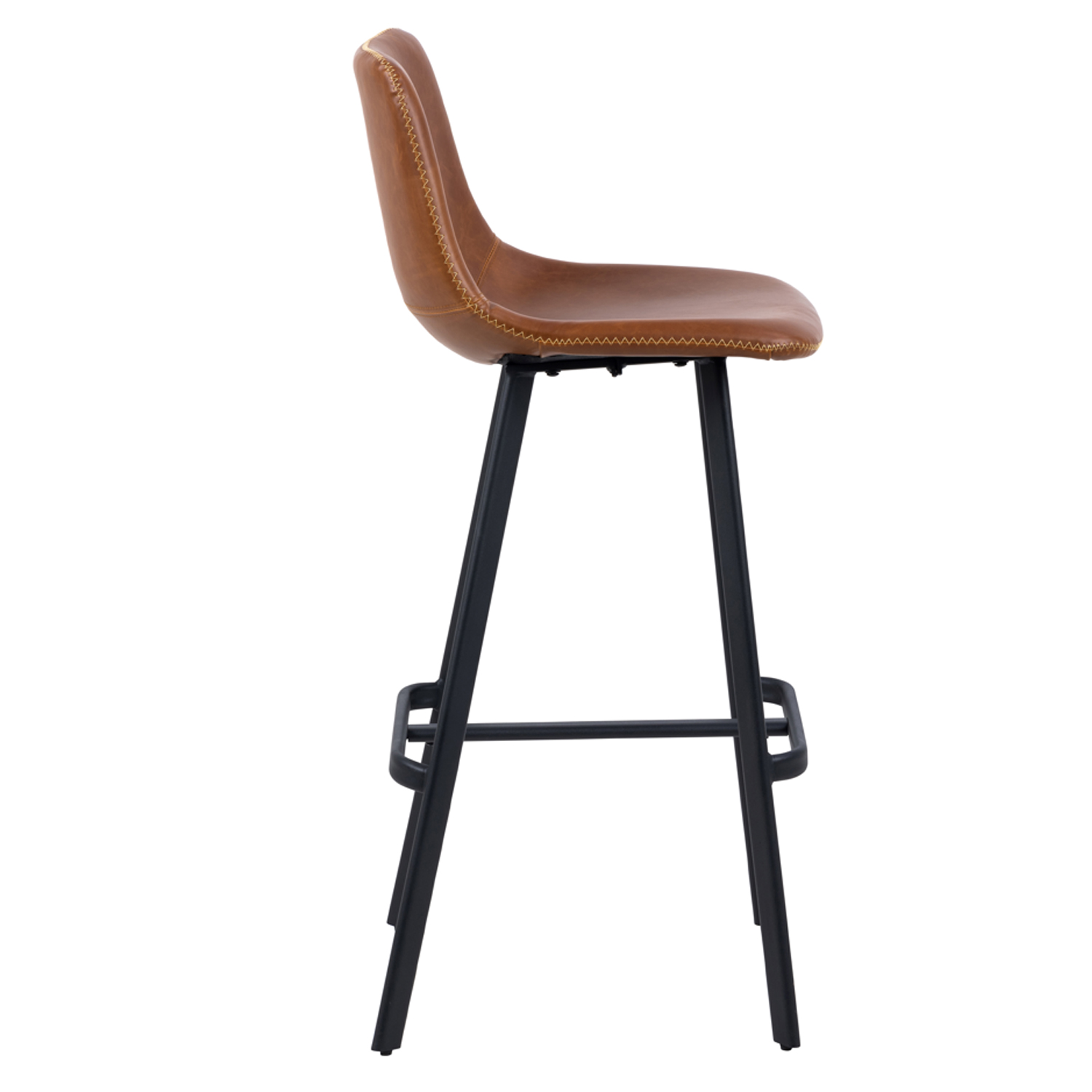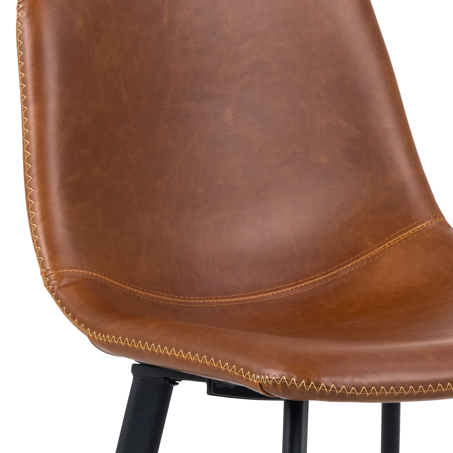 Baro kėdė OREGON 46,5x50xH103cm, sėdynė ir atlošas: vintažinė brendžio 11 spalvos oda, smėlio spalvos zigzago formos dygsniai, koja: juodas metalas. Sėdynės aukštis: 75 cm. Ribinis svoris: 110 kg.