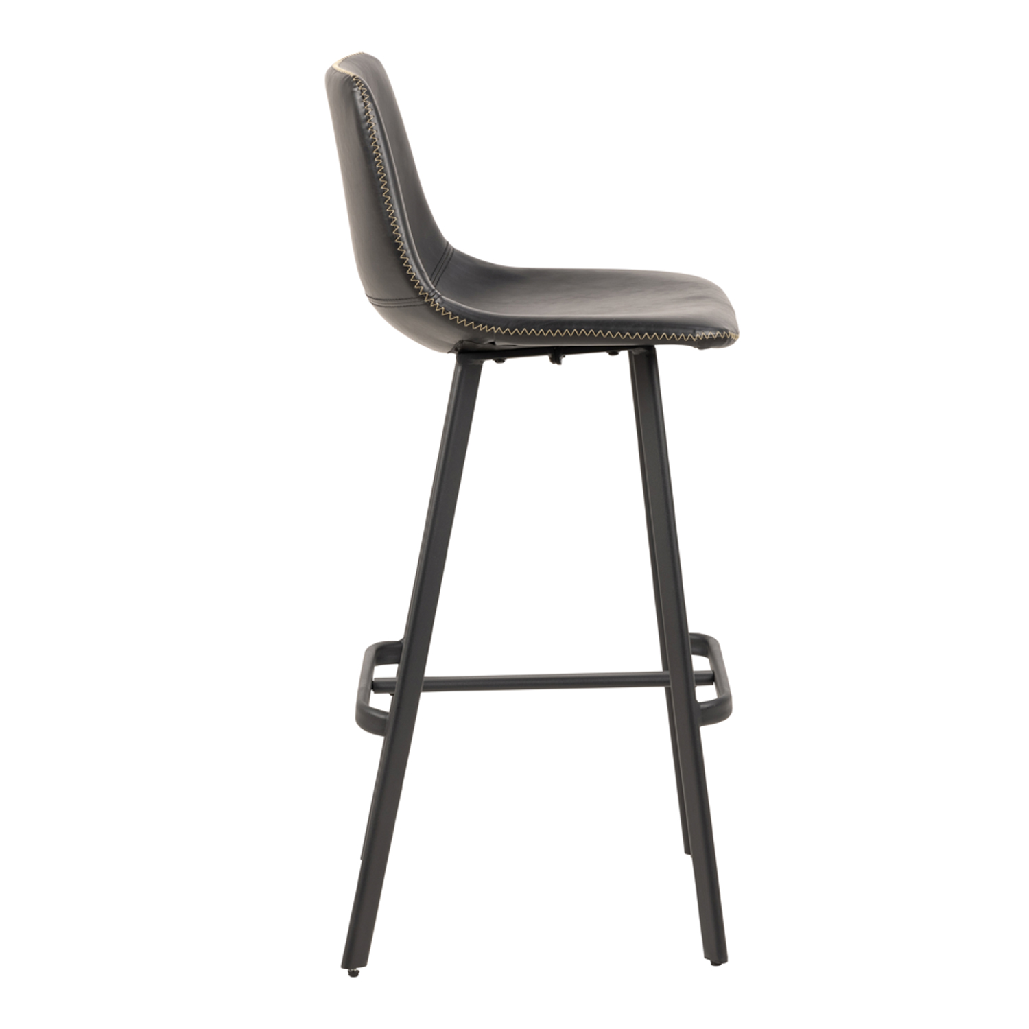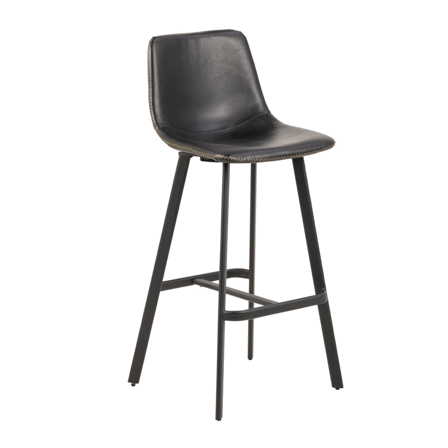 Baro kėdė OREGON 46,5x50xH103cm. Sėdynė: vintažinė, juoda, PU 247, siuvama zig zag, kojos: 4 plieninės, juodos, atrama kojoms. Sėdėjimo aukštis: 76,5 cm. Ribinis svoris: 110 kg.