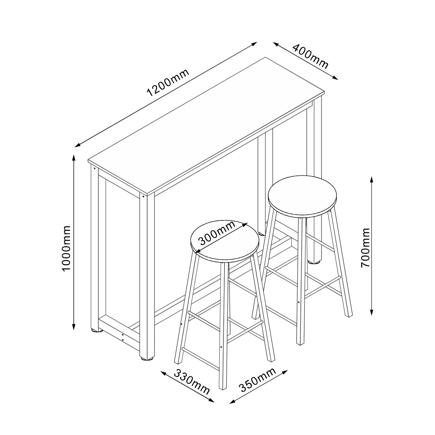 Baro komplektas SANCIA stalas ir 2 baro kėdės, ąžuolo/rudos spalvos. Stalo rėmas ir baro kojų kojos metalinės, padengtos rudos spalvos milteliais. Stalo stalviršis ir baro kėdžių sėdynės pagamintos iš melamino ir ąžuolo faneruotės. Stalo matmenys 120x40xH100 cm, baro kėdžių 35x33xH70 cm.