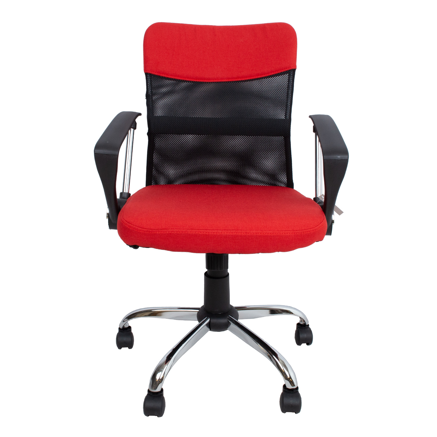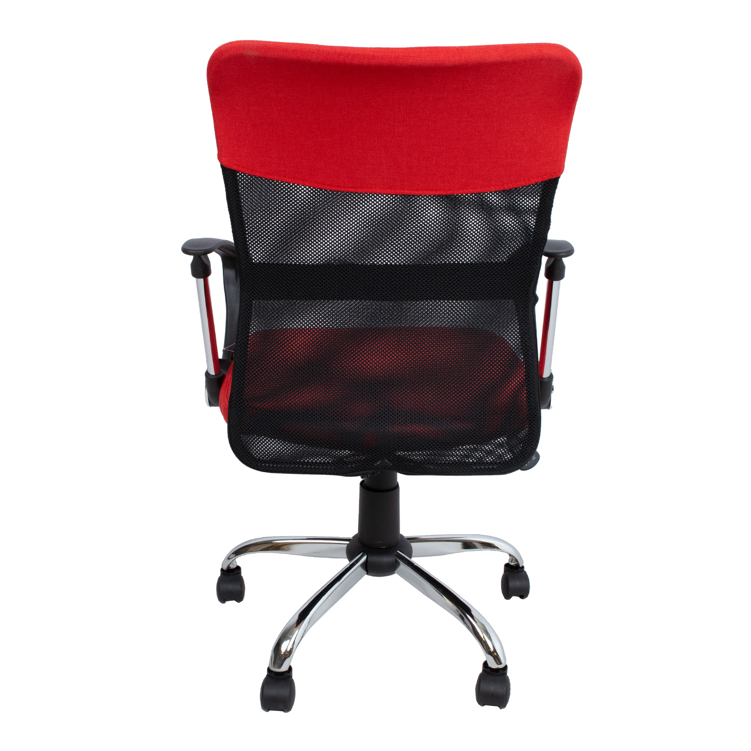 Darbo kėdė DARIUS raudona/juoda. Švelniai apmušta, sėdynė ir viršutinė atlošo dalis aptrauktos poliesterio audiniu. Vidurinė atlošo dalis aptraukta poliesterio tinkleliu. Kėdėje įrengtas supamasis mechanizmas, fiksuojamas vienoje padėtyje. Sėdynės aukštis reguliuojamas dujiniu dangteliu. Porankiai yra plastikiniai ir metaliniai. Penkių ranktūrių metalinis kojų atramos pagrindas, R30 cm. Kėdė turi plastikinius 50 mm ratukus. Kėdės aukštis 93-103 cm, sėdynės plotis 47 cm, sėdynės gylis 46 cm, atlošo plotis 43,5 cm, atlošo aukštis 58 cm. Gaminio matmenys 57x57xH93-103 cm. Kėdės svorio riba 100 kg.