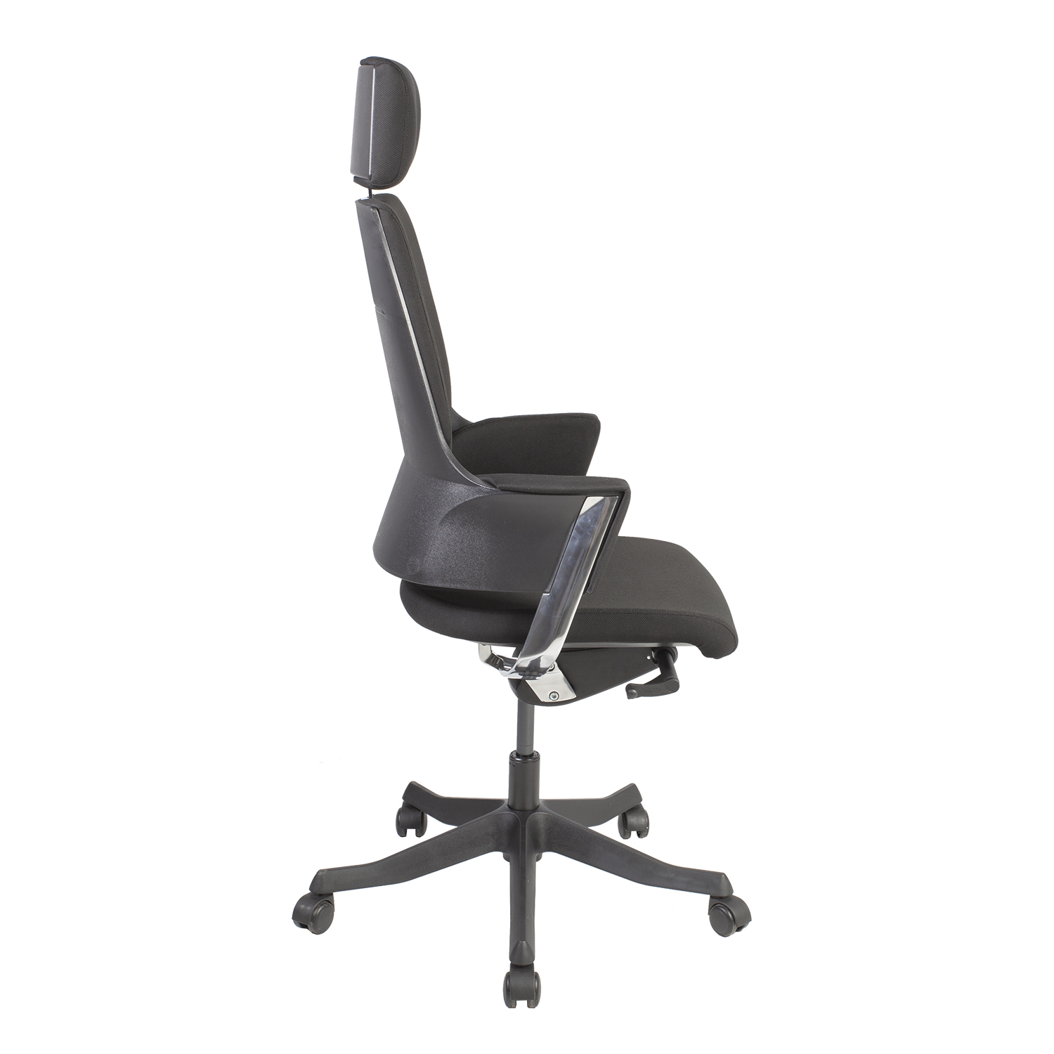 Darbo kėdė DELPHI juoda. DELPHI kėdė yra garbinga ir oriai atrodanti, tačiau nesumažina komforto ir ergonomikos. Atlošas ir porankiai sudaro kompaktišką visumą, užtikrinančią gerą atramą. Išorinis atlošo korpusas suformuotas iš juodo plastiko (100 % PP perdirbamas), kurį papildo įspūdingos kėdės šonuose esančios įpurškiamo aliuminio poliruotos apdailos detalės. Sėdynė ir atlošas aptraukti patvariu poliesterio audiniu, Martindale vertė 50 000. Kėdė turi sinchroninį mechanizmą. Atlošo kampas fiksuojamas laisvai pasirenkamoje padėtyje. Reguliuojamas kėdės pasvirimas. Sėdynės aukštis reguliuojamas droseliais. Reguliuojamos galvos atramos aukštis. Kėdės 5 rangų kojų atrama pagaminta iš juodo plastiko. Kėdė turi grindis tausojančius nailoninius ratukus su stabdžiais. Bendrieji kėdės matmenys yra 70x70xH117,5-133,5 cm. Sėdynės plotis 47 cm, sėdynės gylis 47 cm, sėdynės aukštis 41,5-53 cm. Ribinis svoris 120 kg.