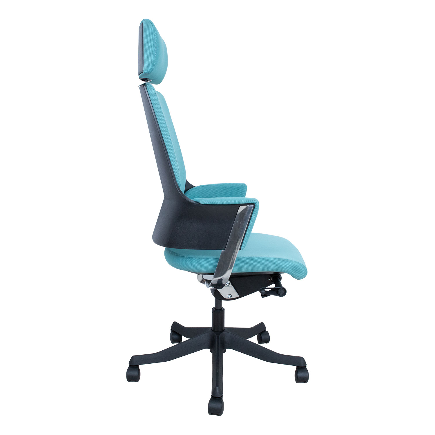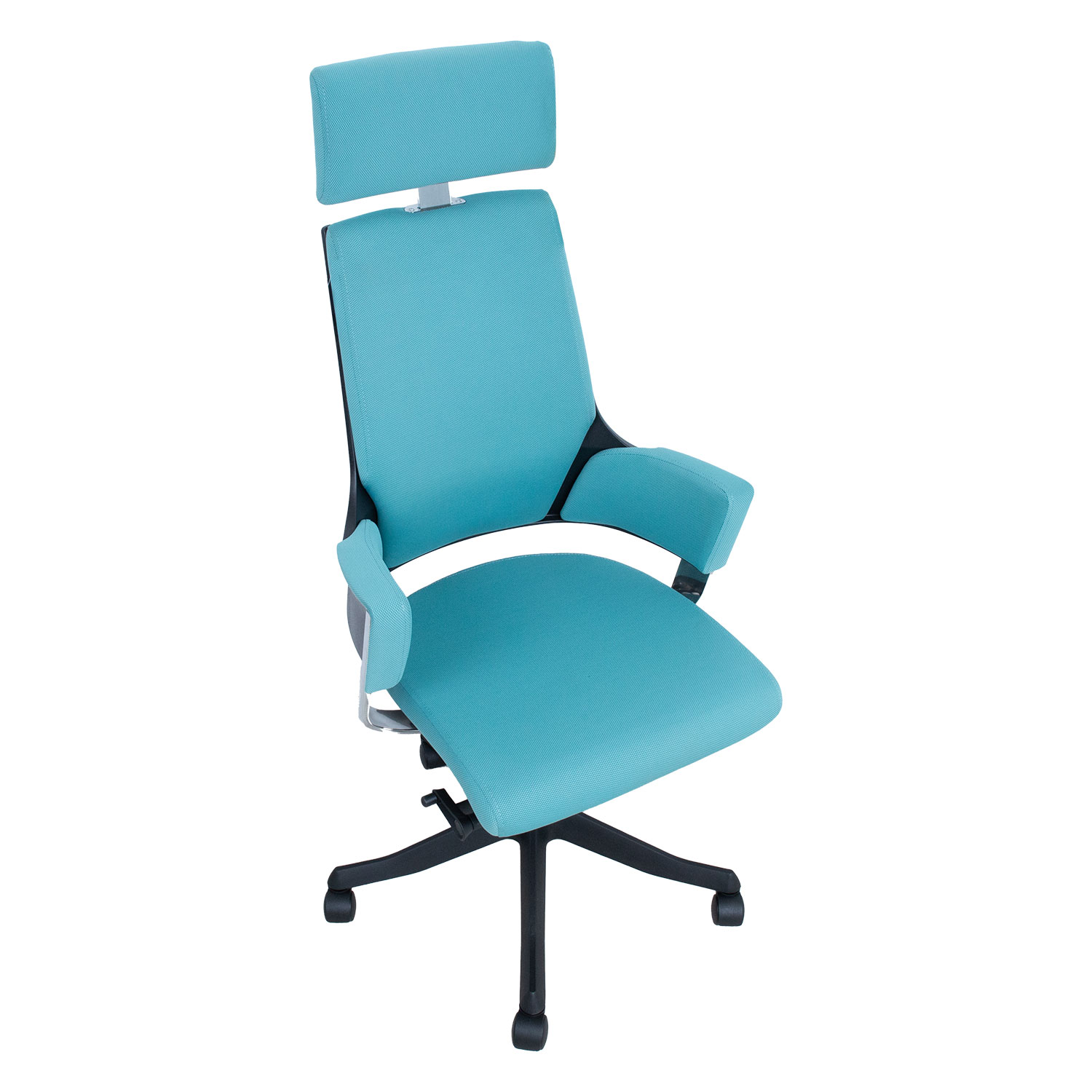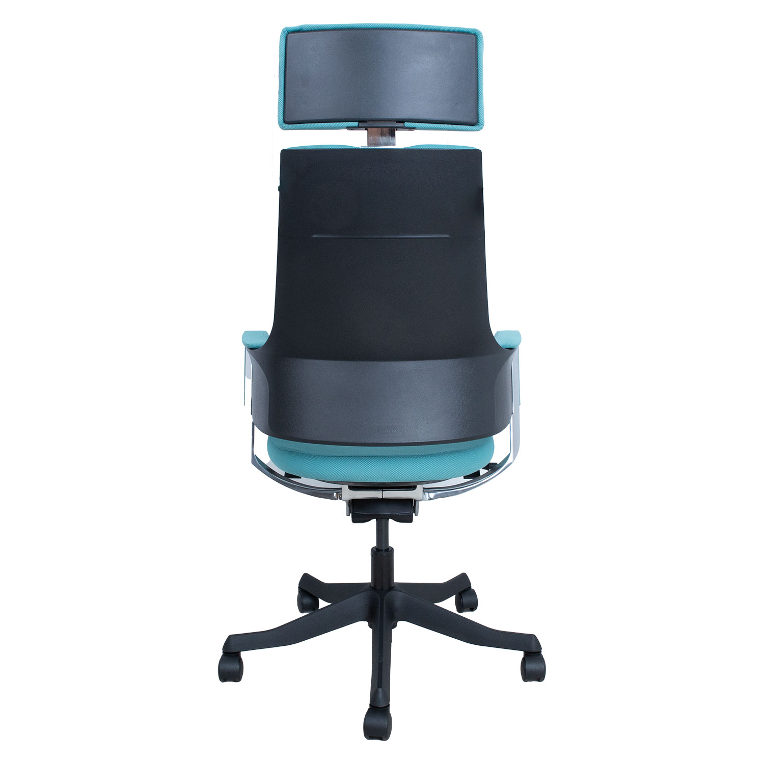 Darbo kėdė DELPHI mėlynai žalia. DELPHI kėdė yra garbinga ir oriai atrodanti, tačiau nesumažina komforto ir ergonomikos. Atlošas ir porankiai sudaro kompaktišką visumą, užtikrinančią gerą atramą. Išorinis atlošo korpusas suformuotas iš juodo plastiko (100 % PP perdirbamas), kurį papildo įspūdingos kėdės šonuose esančios įpurškiamo aliuminio poliruotos apdailos detalės. Sėdynė ir atlošas aptraukti patvariu poliesterio audiniu, Martindale vertė 50 000. Kėdė turi sinchroninį mechanizmą. Atlošo kampas fiksuojamas laisvai pasirenkamoje padėtyje. Reguliuojamas kėdės pasvirimas. Sėdynės aukštis reguliuojamas droseliais. Reguliuojamos galvos atramos aukštis. Kėdės 5 rangų kojų atrama pagaminta iš juodo plastiko. Kėdė turi grindis tausojančius nailoninius ratukus su stabdžiais. Bendrieji kėdės matmenys yra 70x70xH117,5-133,5 cm. Sėdynės plotis 47 cm, sėdynės gylis 47 cm, sėdynės aukštis 41,5-53 cm. Ribinis svoris 120 kg.