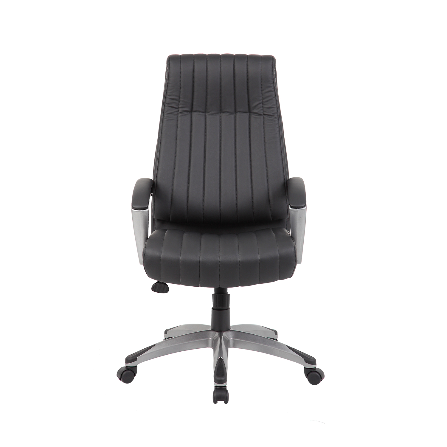 Darbo kėdė ELEGANT juodos spalvos. Sėdynė ir atlošas aptraukti juoda oda. Rėmas yra juodos spalvos. Kėdė turi sinchroninį mechanizmą. Sūpynės standumas reguliuojamas atsižvelgiant į sėdinčiojo svorį. Sėdynės aukštis reguliuojamas droseliais. Plastikiniai porankiai yra minkšti ir aptraukti oda. Kojų atrama pagaminta iš juodo plastiko. Kėdė turi plastikinius ratukus, kaištis: 11 mm. Kėdės aukštis 112-119,5 cm. Gaminio matmenys: 62,5×76,5xH112-119,5 cm. Kėdės svorio riba 120 kg.