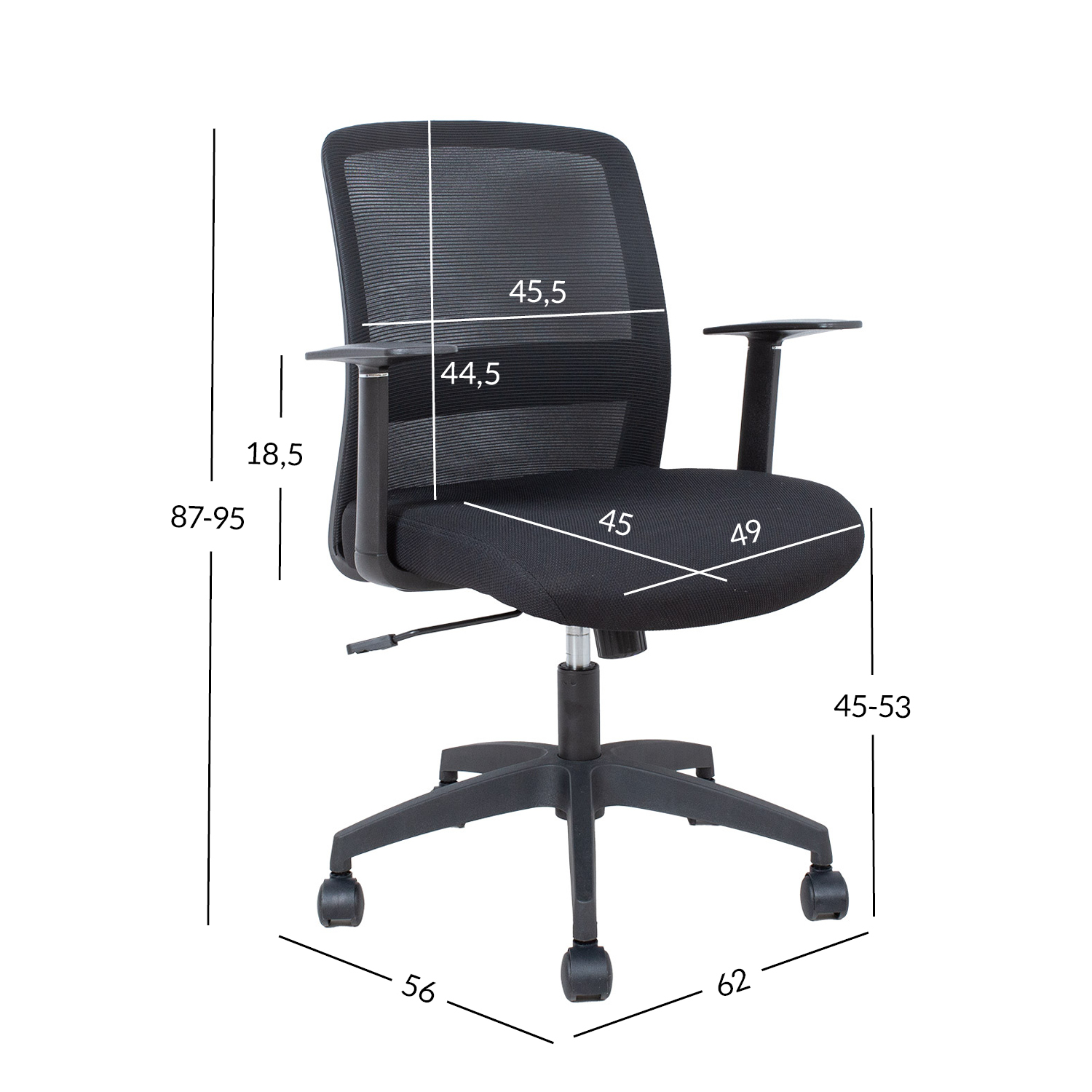 Bendrieji kėdės matmenys 62x56xH87-95 cm.
