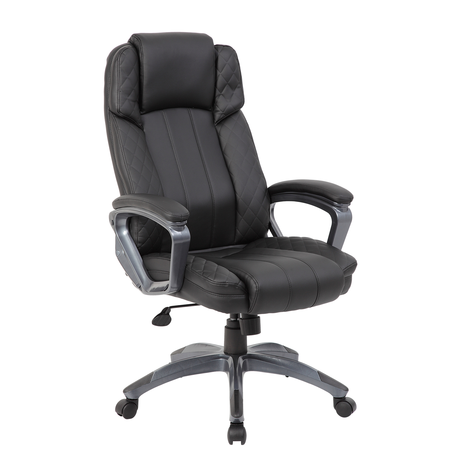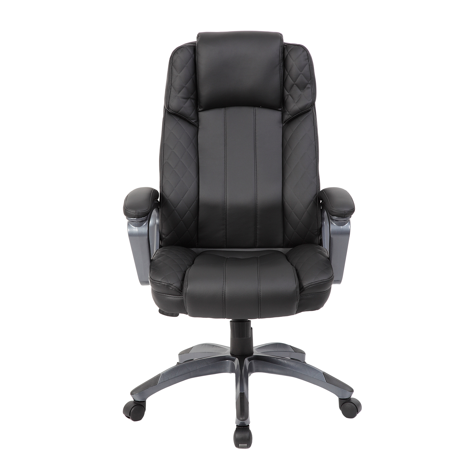 Darbo kėdė HOWARD juoda. Sėdynė ir atlošas aptraukti juoda oda. Kėdė turi sinchroninį mechanizmą. Sūpynės standumas reguliuojamas atsižvelgiant į sėdinčiojo svorį. Sėdynės aukštis reguliuojamas droseliais. Porankiai pagaminti iš tamsiai pilko plastiko su minkštu apmušalu. Tamsiai pilko plastiko 5 ranktūrių kojų atrama, D68,5 cm. Kėdė turi plastikinius ratukus. Kėdės aukštis 116-123,5 cm. Gaminio matmenys: 66×75,5xH116-123,5 cm. Kėdės svorio riba – 120 kg.