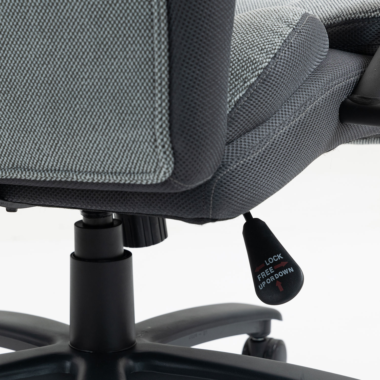 Kėdė turi 5 porankių metalinį pagrindą, R37 cm ir grindis tausojančius 60 mm poliuretano ratukus.