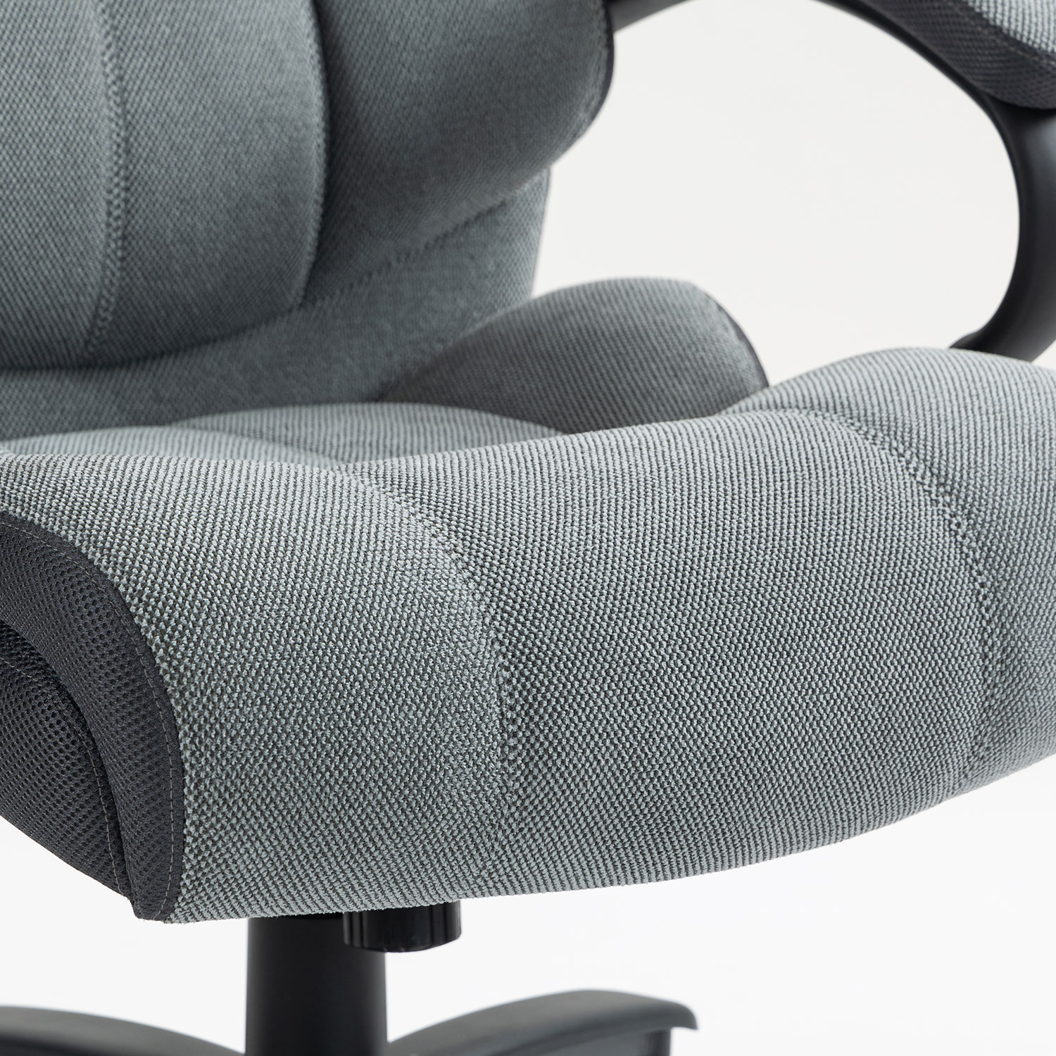 Sėdynė ir atlošas aptraukti pilku poliesterio audiniu, o šonai – poliesterio tinkleliu.