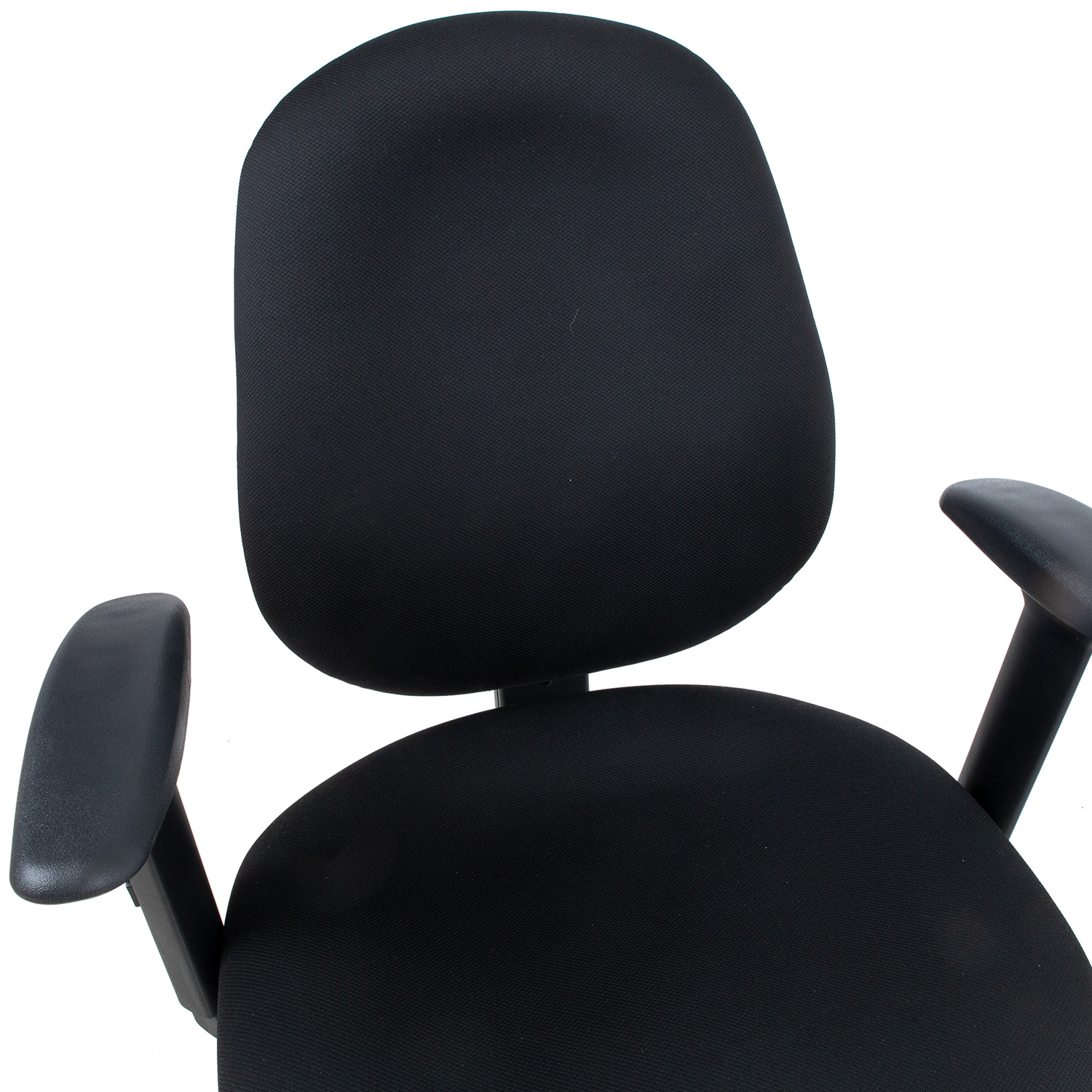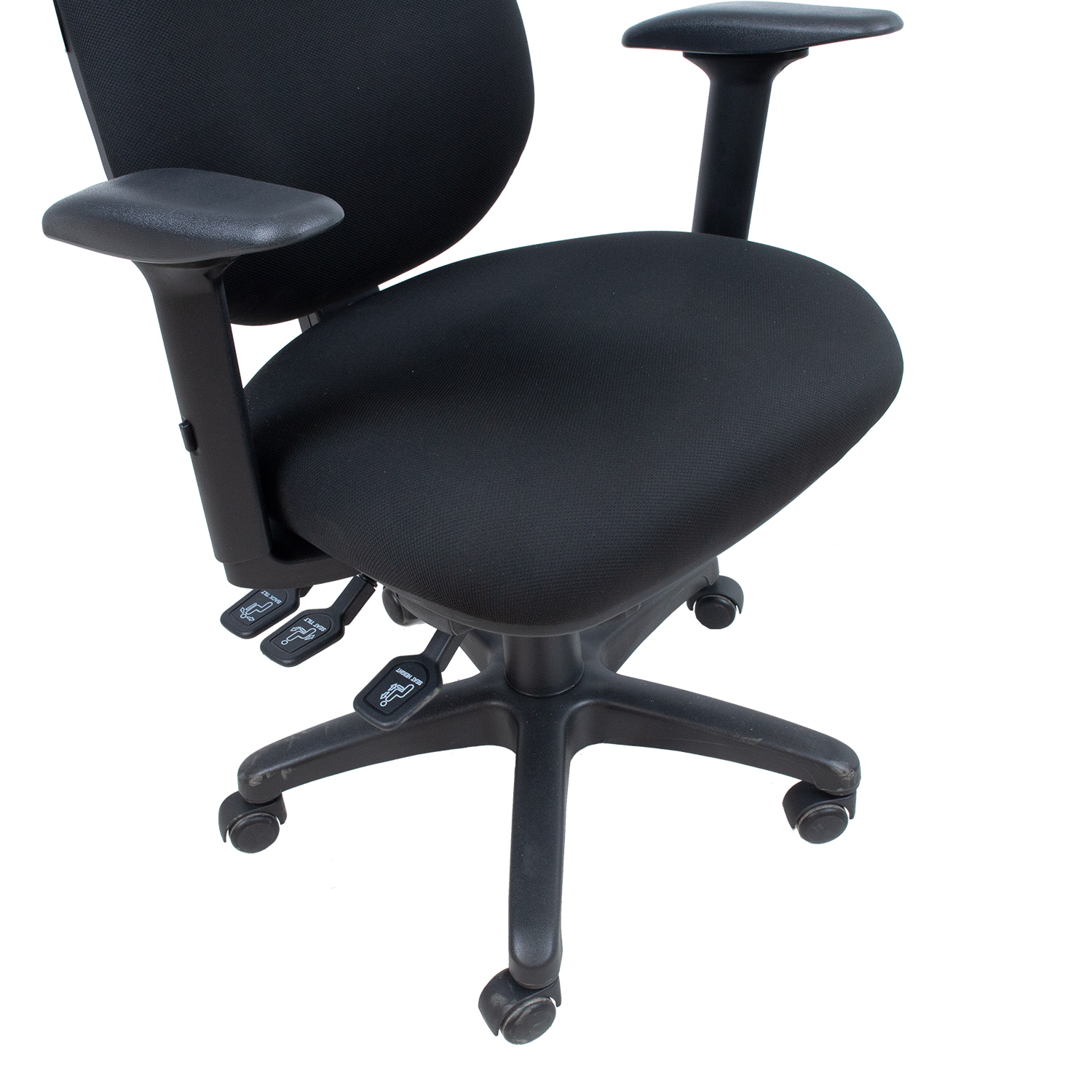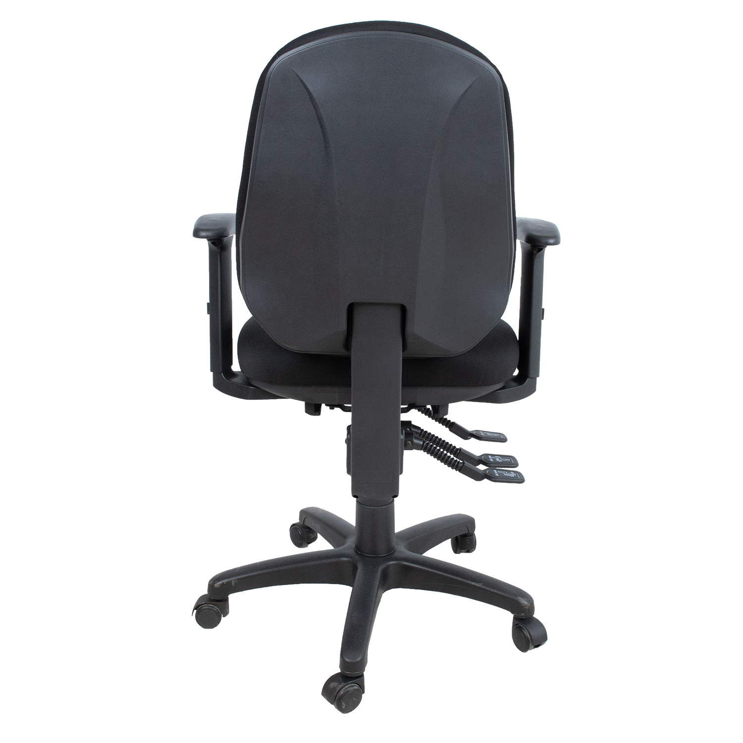 Darbo kėdė SAGA juoda. Ergonomiško dizaino kėdė su universaliu reguliavimu. Sėdynė minkštai apmušta ir patogios formos. Sėdynė aptraukta poliesterio audiniu, 50 000 Martindale. Plastikinis korpusas yra juodos spalvos. Kėdė turi sinchroninį mechanizmą, fiksuojamą keliose padėtyse. Sėdynę ir atlošą galima reguliuoti nepriklausomai. Atlošo aukštis reguliuojamas nuo 49 iki 56,5 cm. Reguliuojamas ir fiksuojamas atlošo kampas. Sėdynės gylis ir sėdimosios dalies kampas reguliuojami, neigiamas pasvirimas. Sėdynės aukštis reguliuojamas droseliais. Plieniniai porankiai padengti juodu plastiku. Porankiai turi patogų poliuretano atraminį paviršių. Porankiai reguliuojami trimis kryptimis. Porankių aukštis reguliuojamas nuo 19,5 iki 29 cm. Porankių atraminį paviršių galima stumdyti pirmyn ir atgal, o pasukimo kampą galima keisti nuo įjungto iki išjungto. Juodos spalvos 5 rankovių atramos kojoms pagamintos iš polipropileno plastiko, D64 cm. Kėdė turi plastikinius ratukus, 50 mm. Bendrieji kėdės matmenys yra 64x64x95,5-115 cm. Kėdės aukštis 95,5-115 cm, sėdynės aukštis 46,5-49 cm, sėdynės gylis 39-44 cm, sėdynės plotis 44 cm. Ribinis svoris 120 kg.