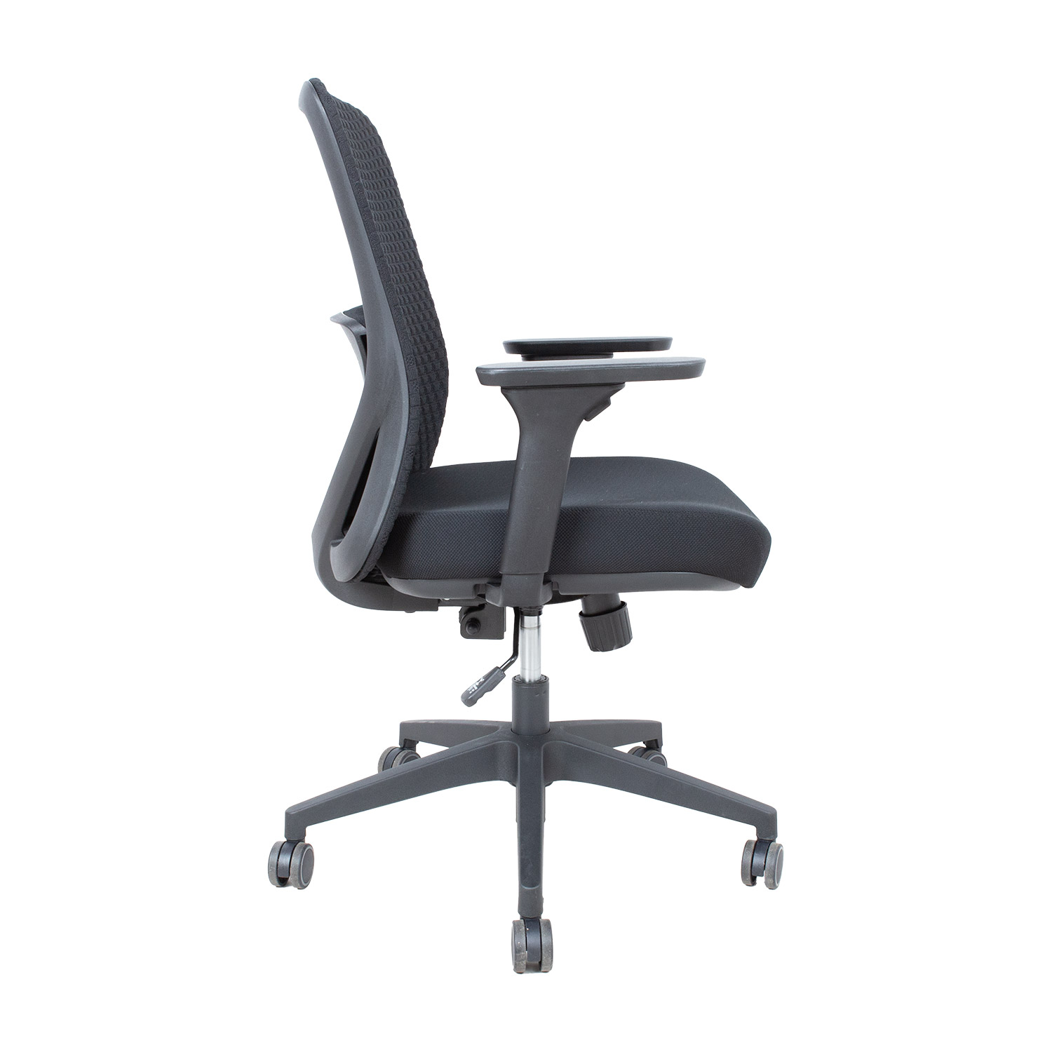 Porankiai: juodas plastikas, reguliuojamas aukštis nuo 17,5 iki 24 cm. Reguliuojamas porankių gylis ir pasukimo kampas.