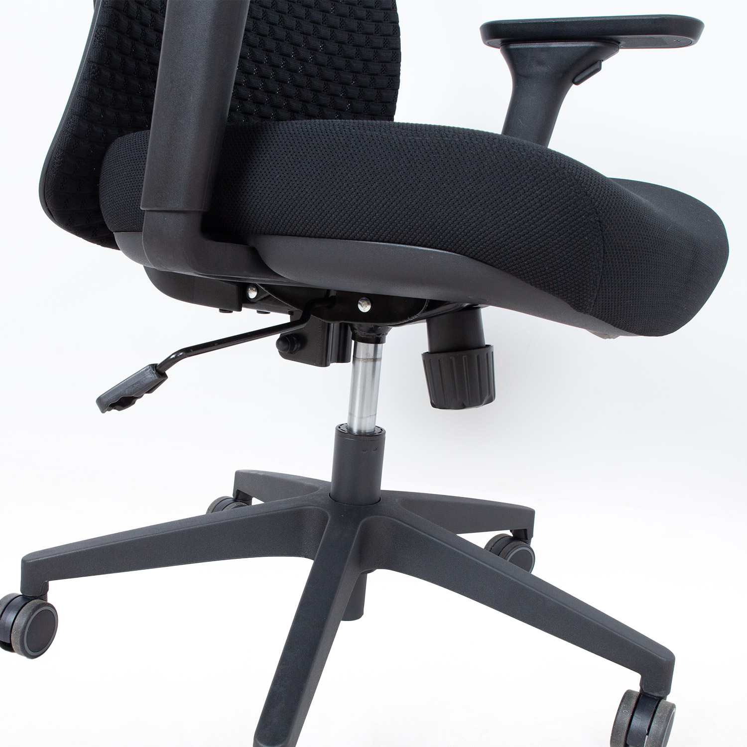 Kėdė turi sinchroninį mechanizmą, kelių padėčių fiksatorių, sūpynės standumo reguliavimą.