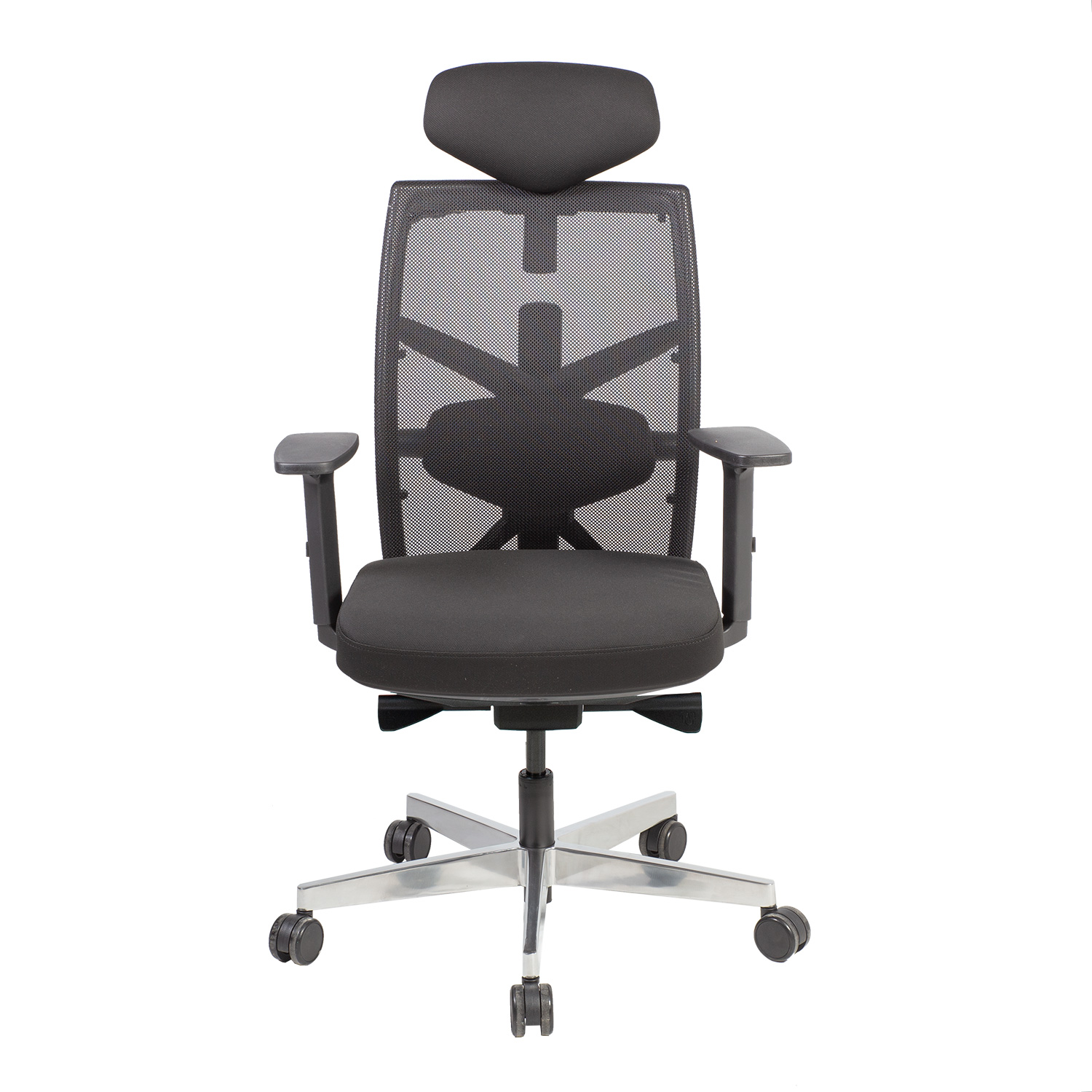 Darbo kėdė TUNE juoda. Sėdynė aptraukta poliesterio audiniu, 50 000 Martindale. Atlošas aptrauktas poliesterio tinkleliu. Plastikinis kėdės korpusas yra juodos spalvos. Kėdė turi supimo mechanizmą, fiksuojamą keliose padėtyse, ir automatinį supimo standumo reguliavimą. Atlošo aukštis reguliuojamas nuo 50 iki 60,5 cm, sėdynės gylis – nuo 44 iki 48 cm. Sėdynės aukštis reguliuojamas droseliais. Reguliuojama jų atrama. Juodos spalvos plastikiniai porankiai, reguliuojami trimis kryptimis. Porankių atramų aukštis reguliuojamas nuo 20,5 iki 30,5 cm. Porankių atraminį paviršių galima stumdyti pirmyn ir atgal, o pasukimo kampą galima įjungti ir išjungti. Galvos atramą galima laisvai pakreipti 30° kampu, o galvos atramos aukštis reguliuojamas. Kėdė turi aliumininį 5 rankovių kojų atramą, D70 cm. Kėdė turi grindis tausojančius ratukus su stabdžiais, 65 mm. Bendrieji kėdės matmenys yra 70x70xH111-128 cm. Kėdės aukštis 111-128 cm, sėdynės aukštis 41,5-51,5 cm, sėdynės gylis 44-48 cm, sėdynės plotis 49 cm. Ribinis svoris 120 kg.