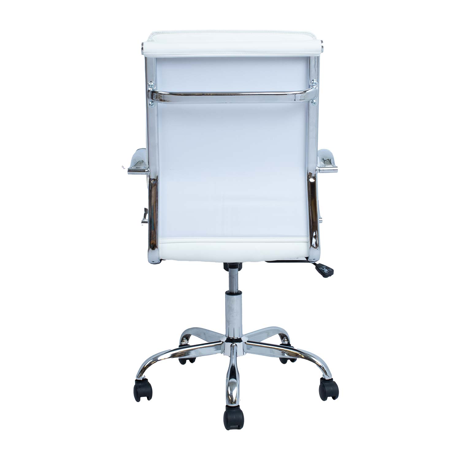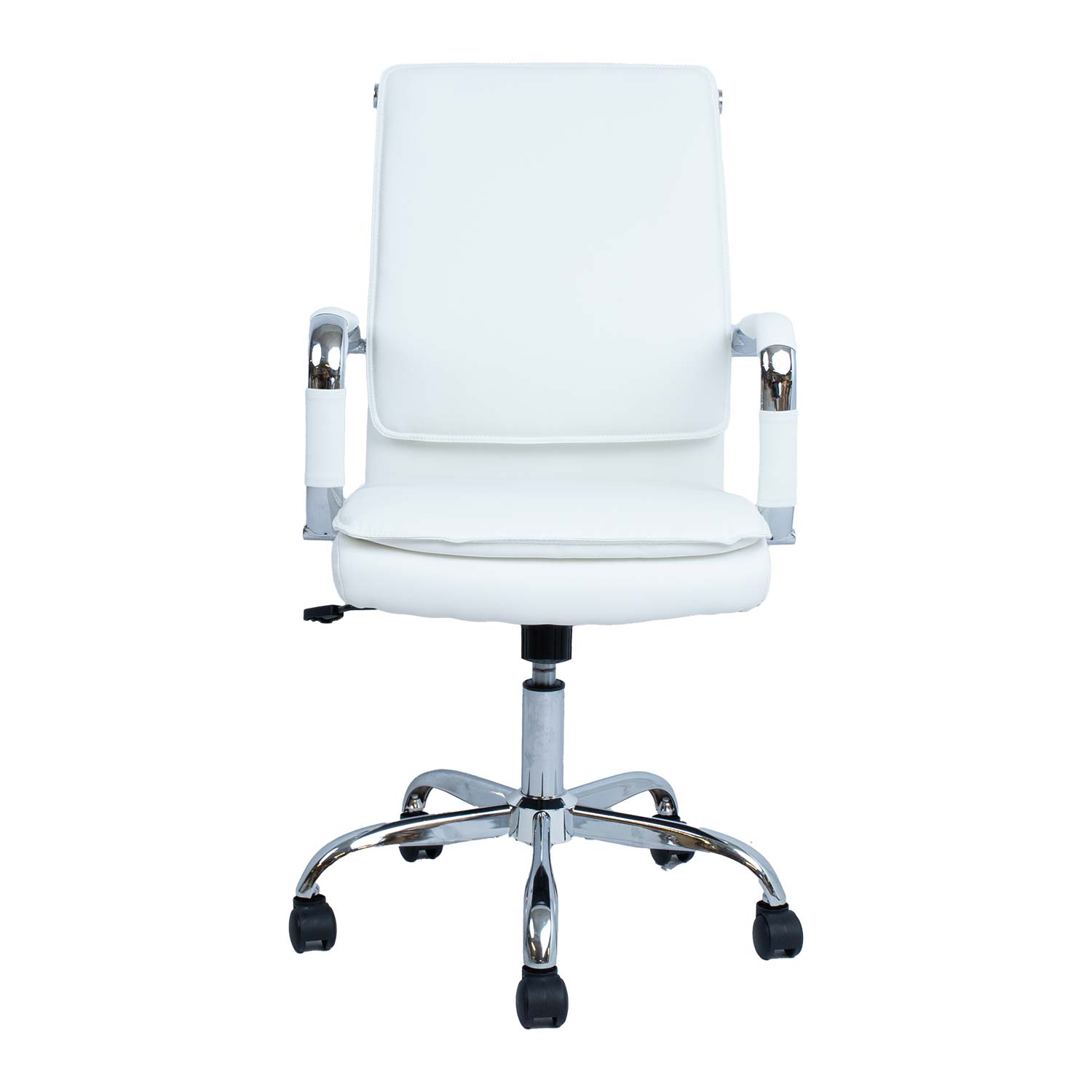 Darbo kėdė ULTRA, balta oda. Sėdynė ir atlošas aptraukti balta oda. Kėdė turi supamąjį mechanizmą. Sėdynės aukštis reguliuojamas dujine virvele. Chromuotos metalinės rankenos padengtos oda. Kėdė turi 5 rankų chromuotą R30 cm ilgio kojų atramą ir plastikinius D50 mm ratukus. Bendrieji kėdės matmenys yra 54,5x63xH94-104 cm, sėdynės plotis 47 cm, sėdynės gylis 51 cm. Atlošo plotis 45,5 cm, atlošo aukštis 55 cm. Ribinis svoris 100 kg.