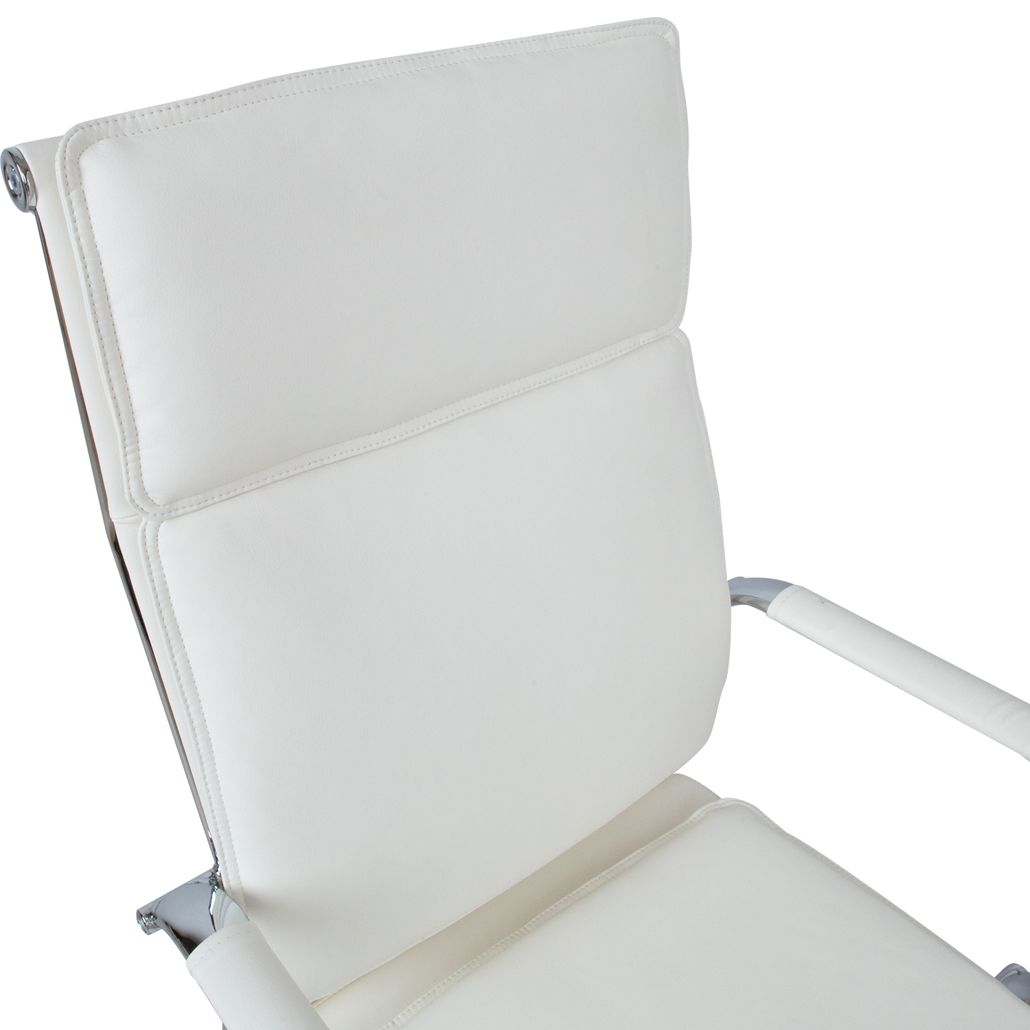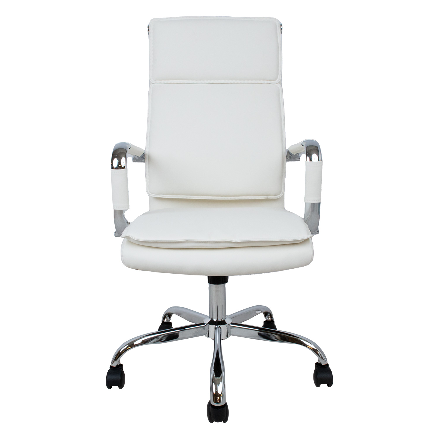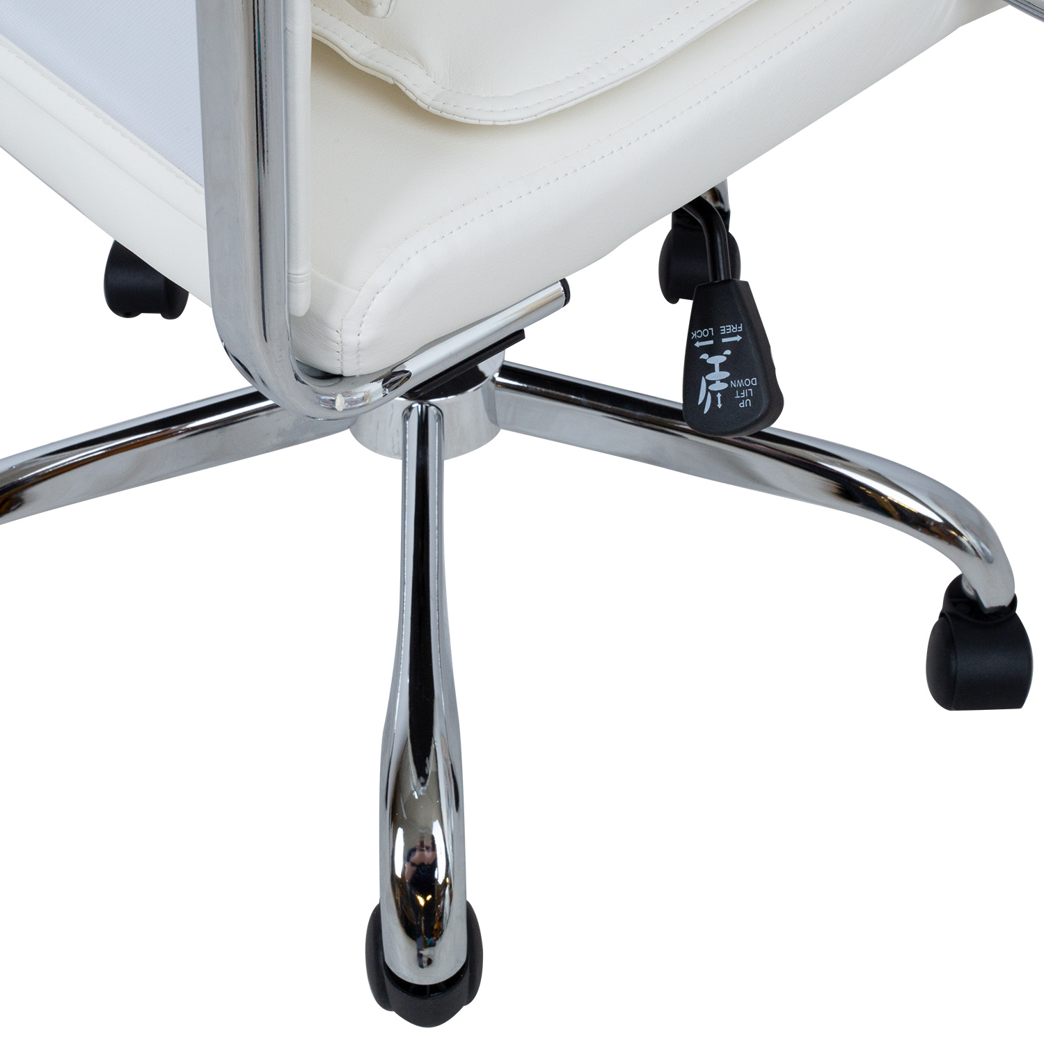 Darbo kėdė ULTRA, balta oda. Sėdynė ir atlošas aptraukti balta oda. Kėdė turi supamąjį mechanizmą. Sėdynės aukštis reguliuojamas dujine virvele. Chromuotos metalinės rankenos padengtos oda. Kėdė turi 5 rankovių chromuotą kojos atramą R32 cm ir plastikinius D50 mm ratukus. Bendrieji kėdės matmenys yra 54,5x60xH106,5-116,5 cm, sėdimosios dalies plotis 46,5 cm, sėdimosios dalies gylis 47,5 cm. Atlošo plotis 45,5 cm, atlošo aukštis 66 cm. Ribinis svoris 100 kg.