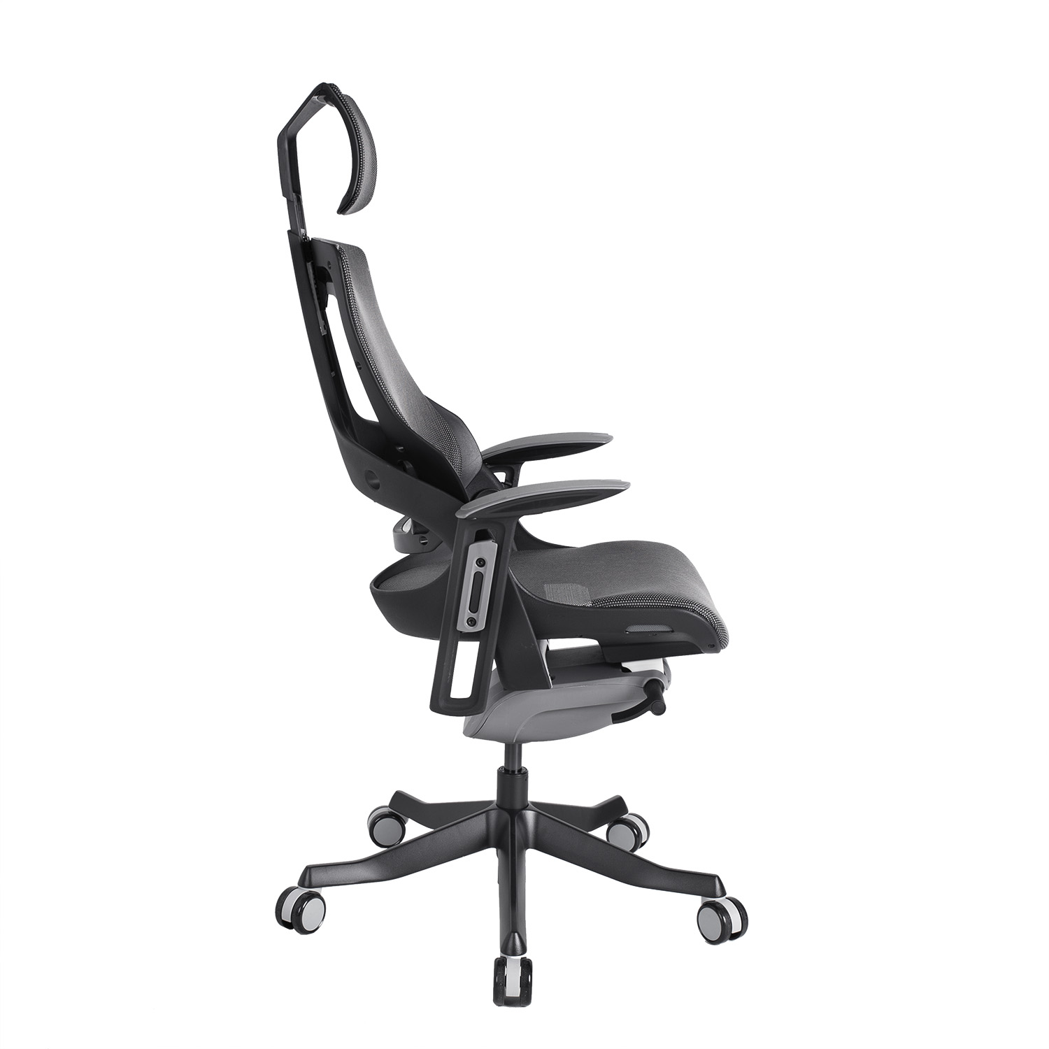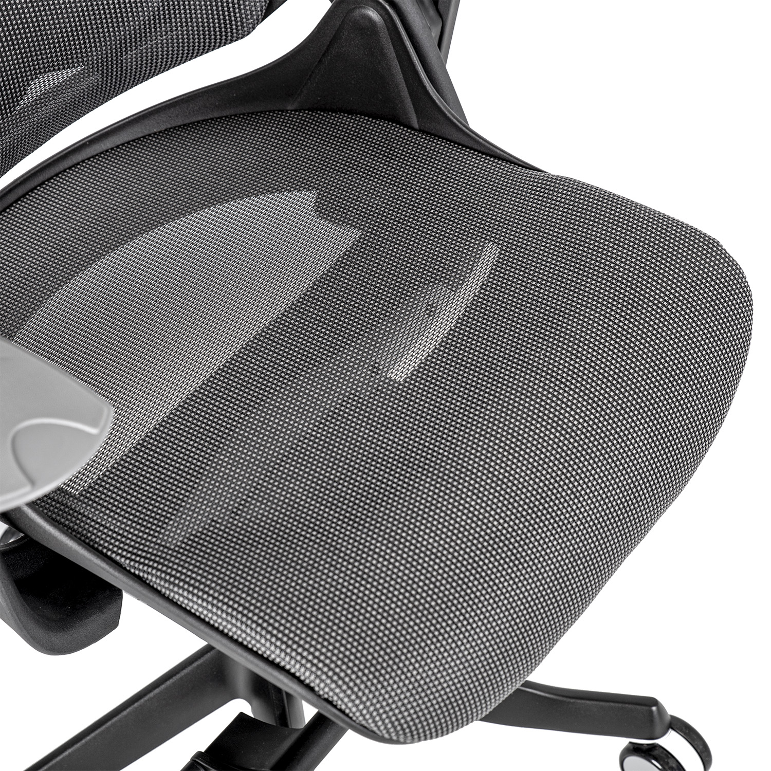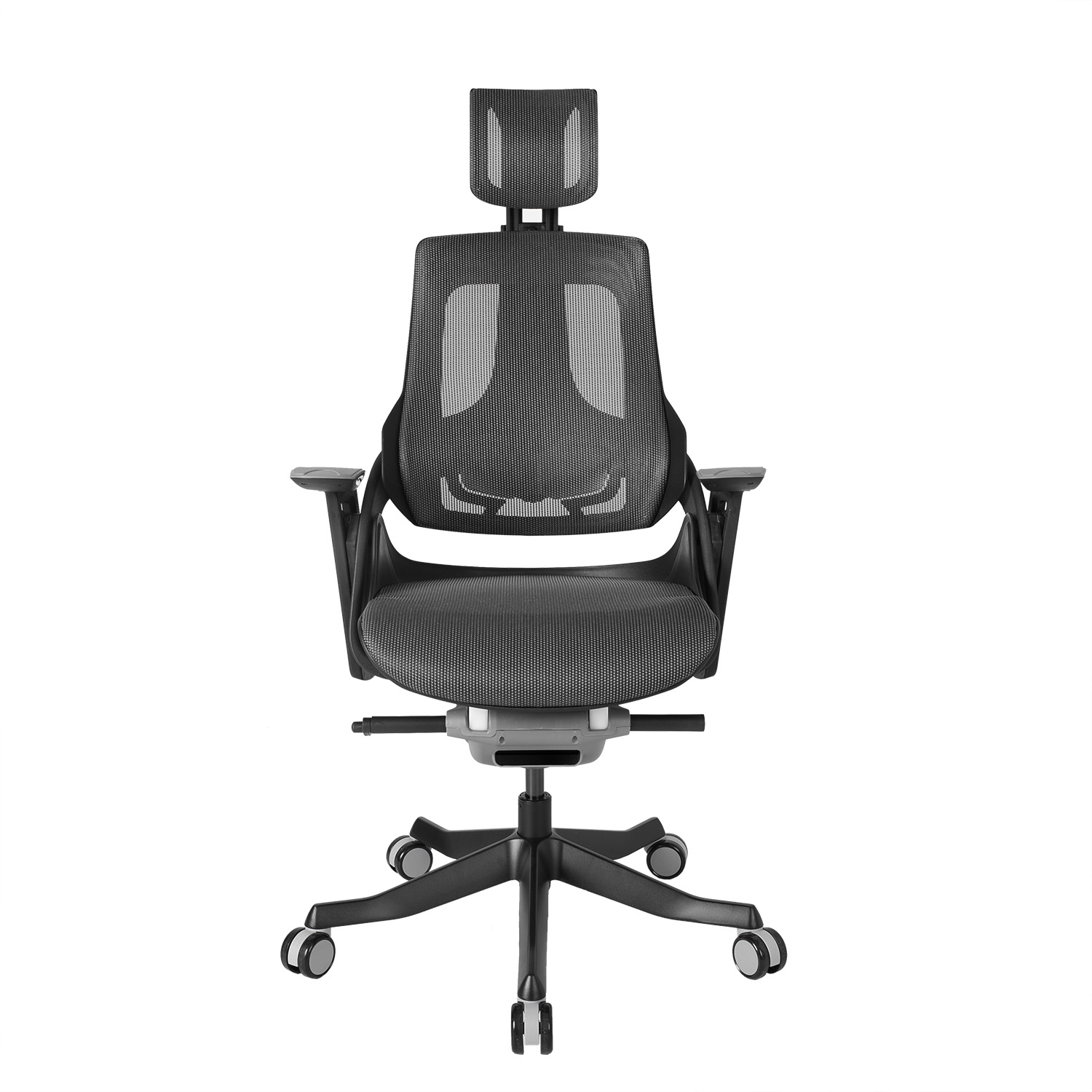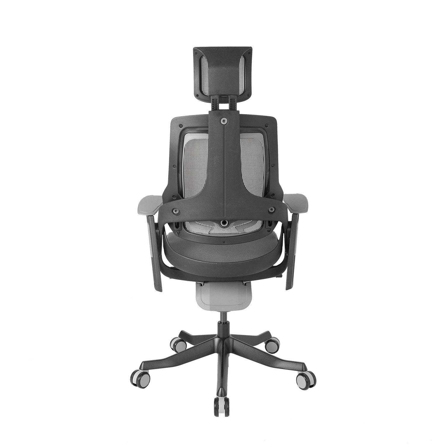 Darbo kėdė WAU pilkos/juodos spalvos korpusu. WAU sujungia puikią ergonomiką ir sportinį stilių, suteikdama geriausią atramą ir pasitenkinimą visą darbo dieną. Išorinis kėdės korpusas pagamintas iš juodo plastiko, o vidinės karkaso dalys išlietos iš pilko plastiko (100 % PP perdirbamas). Plastikinis atlošo rėmas sutvirtintas stiklo pluoštu. Kėdės sėdynė ir atlošas aptraukti pilku tinkliniu audiniu (76 % polielastomero, 24 % poliesterio), Martindale vertė 100 000. Tinklelyje esantys elastomeriniai pluoštai užtikrina didelį tempimo stiprį ir puikų patvarumą. Kėdė turi sinchroninį mechanizmą. Atlošo pasvirimas yra fiksuojamas, o pasvirimo įtempimas reguliuojamas. Sėdynės aukštis reguliuojamas naudojant dujinį kordą. Galvos atramos ir atlošo aukštis reguliuojamas. Kėdė turi reguliuojamą juosmens atramą. Porankių užvalkalai pagaminti iš pilko elastomero termoplasto. Reguliuojamas porankių aukštis ir pasukimo kampas. Kėdės 5 porankių pagrindas pagamintas iš lieto aliuminio ir padengtas juodais epoksidiniais milteliniais dažais. Kėdė turi 60 mm šlifavimo tausojančius nailono ratukus. Bendrieji kėdės matmenys yra 70x70xH112-129 cm. Sėdynės plotis 47 cm, sėdynės gylis 49 cm, sėdynės aukštis 40-48 cm. Ribinis svoris 120 kg.