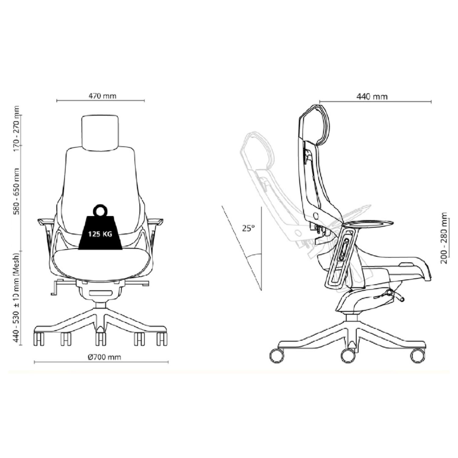 Kėdės 5 porankių pagrindas pagamintas iš lieto aliuminio ir nudažytas juodais epoksidiniais milteliniais dažais.