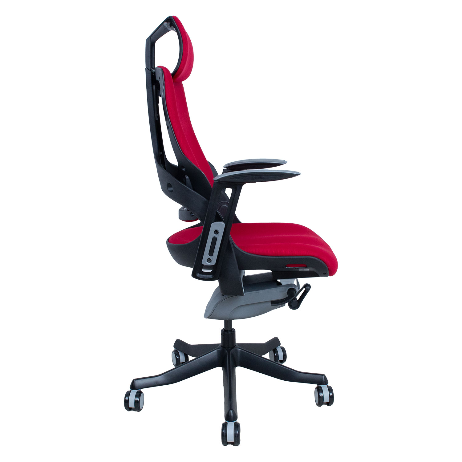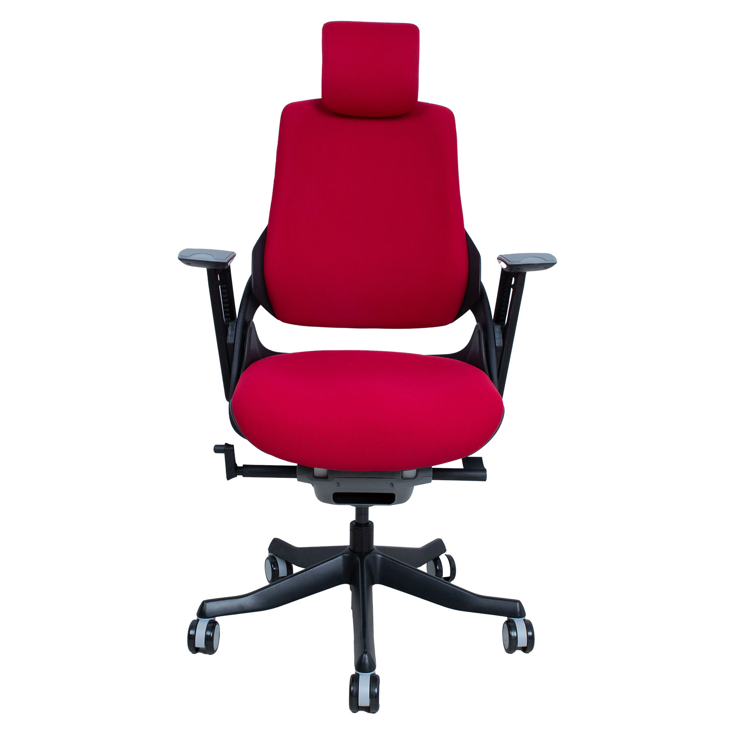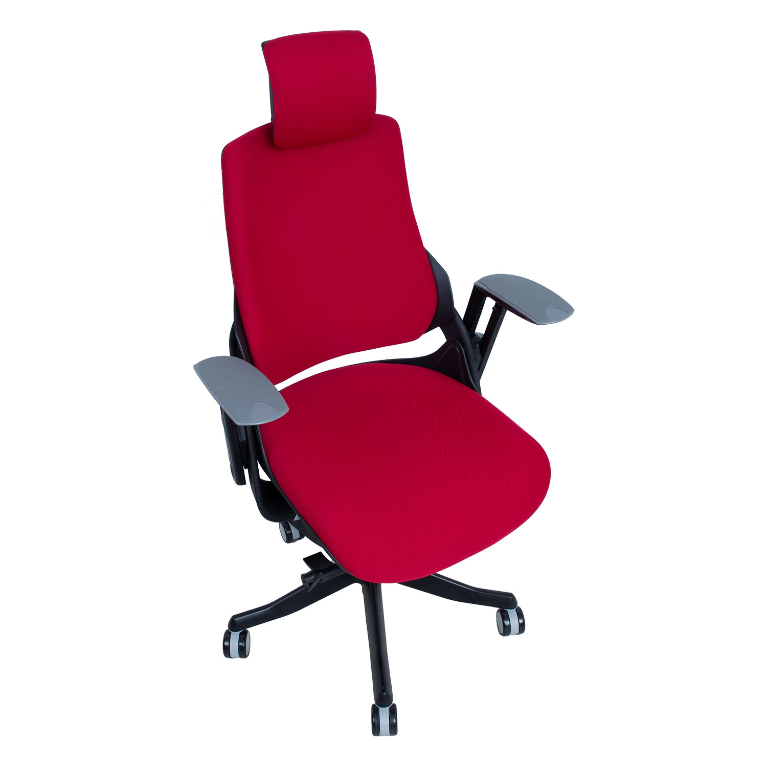 Darbo kėdė WAU tamsiai raudonos spalvos. WAU sujungia puikią ergonomiką ir sportinį stilių, suteikdama geriausią atramą ir pasitenkinimą visą darbo dieną. Išorinis kėdės korpusas pagamintas iš juodo plastiko, o vidinės karkaso dalys išlietos iš pilko plastiko (100 % PP perdirbamas). Plastikinis atlošo rėmas sutvirtintas stiklo pluoštu. Kėdės sėdynė ir atlošas aptraukti tamsiai mėlynos spalvos poliesterio audiniu, Martindale vertė 50 000. Kėdė turi sinchroninį mechanizmą. Atlošo atlenkimo kampas fiksuojamas, o pasvirimas reguliuojamas. Sėdynės aukštis reguliuojamas droseliais. Galvos atramos ir atlošo aukštis reguliuojamas. Kėdė turi reguliuojamą juosmens atramą. Porankių užvalkalai pagaminti iš pilko elastomero termoplasto. Reguliuojamas porankių aukštis ir pasukimas. Kėdės 5 porankių pagrindas pagamintas iš lieto aliuminio ir nudažytas juodais epoksidiniais milteliniais dažais. Kėdė turi 60 mm šlifavimo tausojančius nailono ratukus. Bendrieji kėdės matmenys yra 70x70xH112-129 cm. Sėdynės plotis 47 cm, sėdynės gylis 49 cm, sėdynės aukštis 40-48 cm. Ribinis svoris 120 kg.