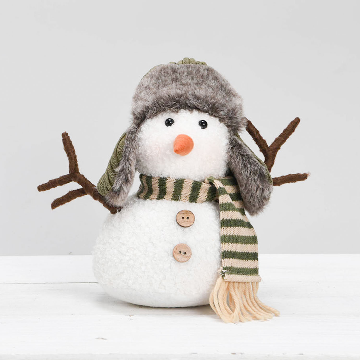 Dekoracija MICA, sniego senis su dryžuotu šaliku.