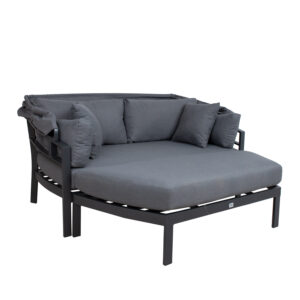Lebola ASCOT 215x110xH187cm, pilkos spalvos. Lebola aliumininis rėmas, padengtas pilku plastikiniu pynimu. Sėdynės matmenys 136/200×110 cm, sėdynės aukštis su pagalvėle 46 cm. Lenkta sėdynės pagalvėlė sudaryta iš dviejų pusių. Sėdynės pagalvėlės matmenys 68/100x110xH13cm – 2 vnt. Atlošo pagalvėlės matmenys 118x50x8cm – 2vnt. Pagalvėlės pagamintos iš pilko olefino audinio. Gaminys yra atsparus besikeičiančioms oro sąlygoms ir labai lengvai prižiūrimas, tik pagalvėles reikia apsaugoti nuo atmosferos poveikio. PRIEŽIŪRA: pasibaigus vasaros sezonui, rekomenduojame sodo baldus laikyti patalpoje. Jeigu sezonui, sodo baldus reikėtų laikyti sode. Sandėliavimui naudokite vėsią, sausą ir gerai vėdinamą patalpą.