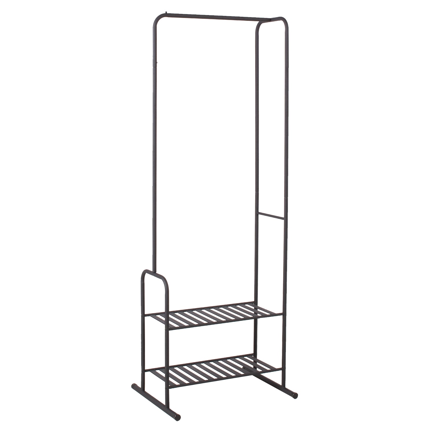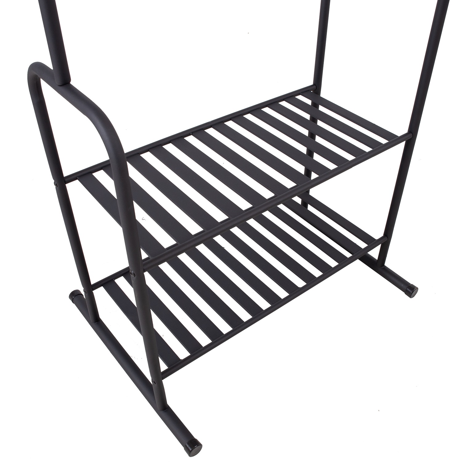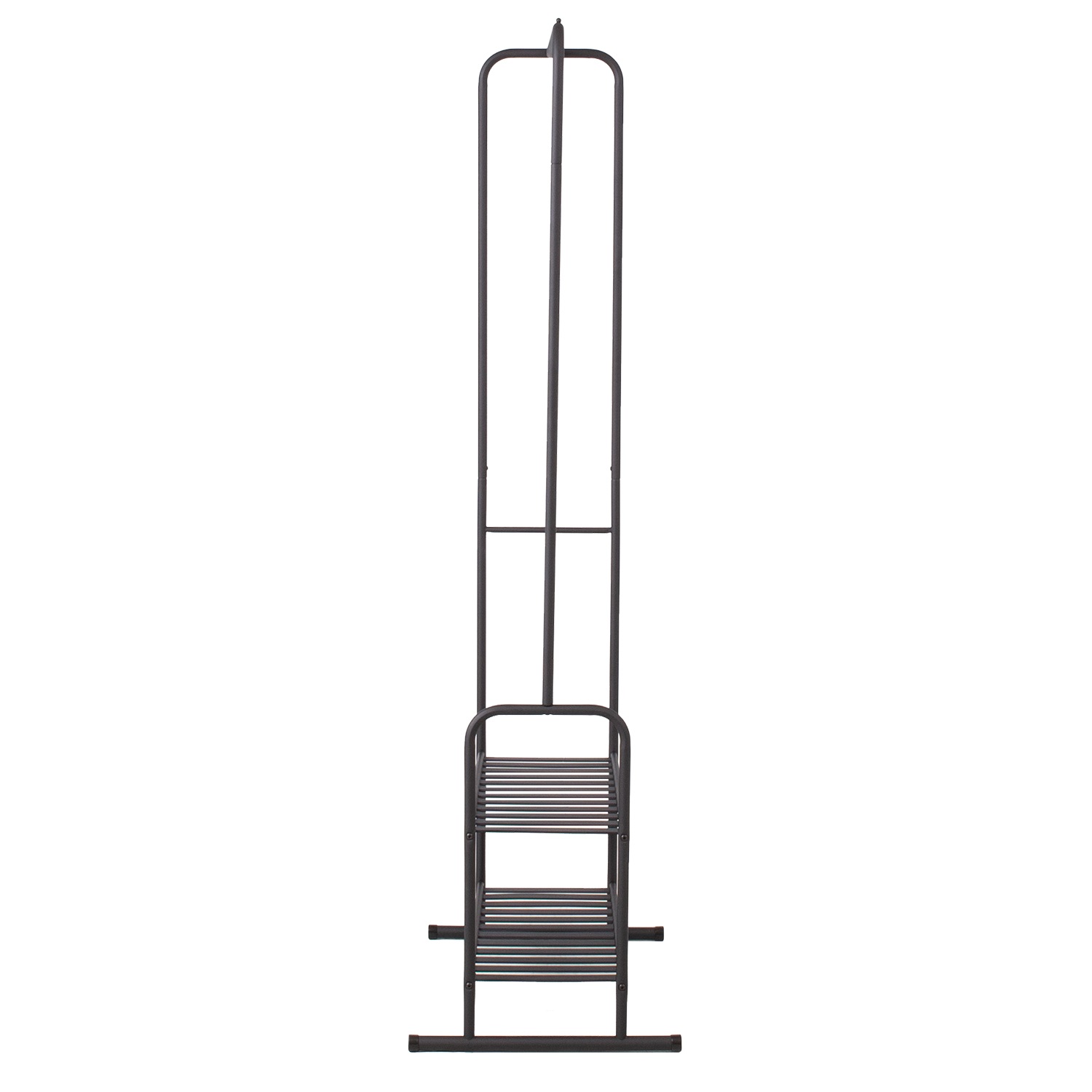 Stulpas FELIX 62x46xH173cm, juodos spalvos. Juodais milteliais dengtas plieninis vamzdis. Dvi lentynos. Krovumas 15 kg.