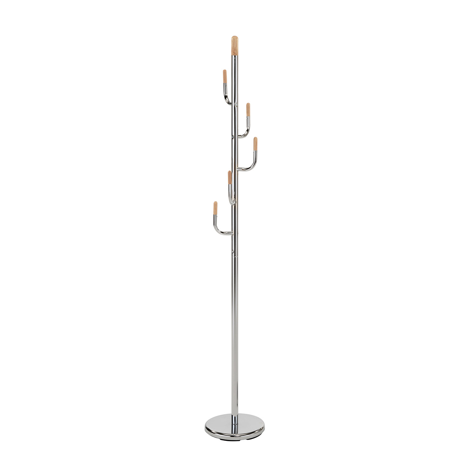 Grindys GLADE chromas. Praktiška pakaba, idealiai tinkanti lengvai pakabinti viršutinius drabužius. Gaminio plieninis rėmas yra chromuotas. Medinės gaminio dalys padengtos natūralia apdaila. Grindų pakabos matmenys D28xH174 cm.