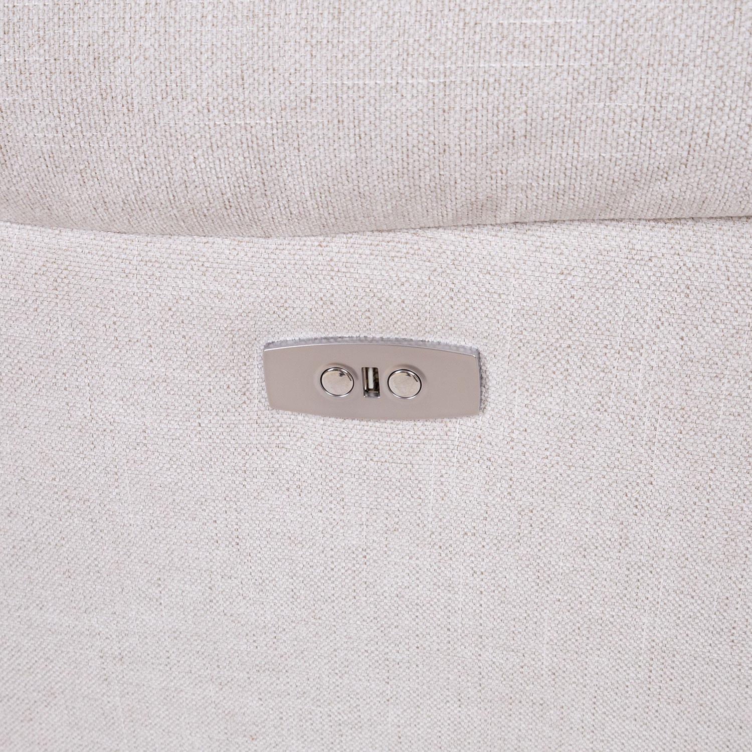 The adjustment buttons and USB port are located on the outside of the armrest.