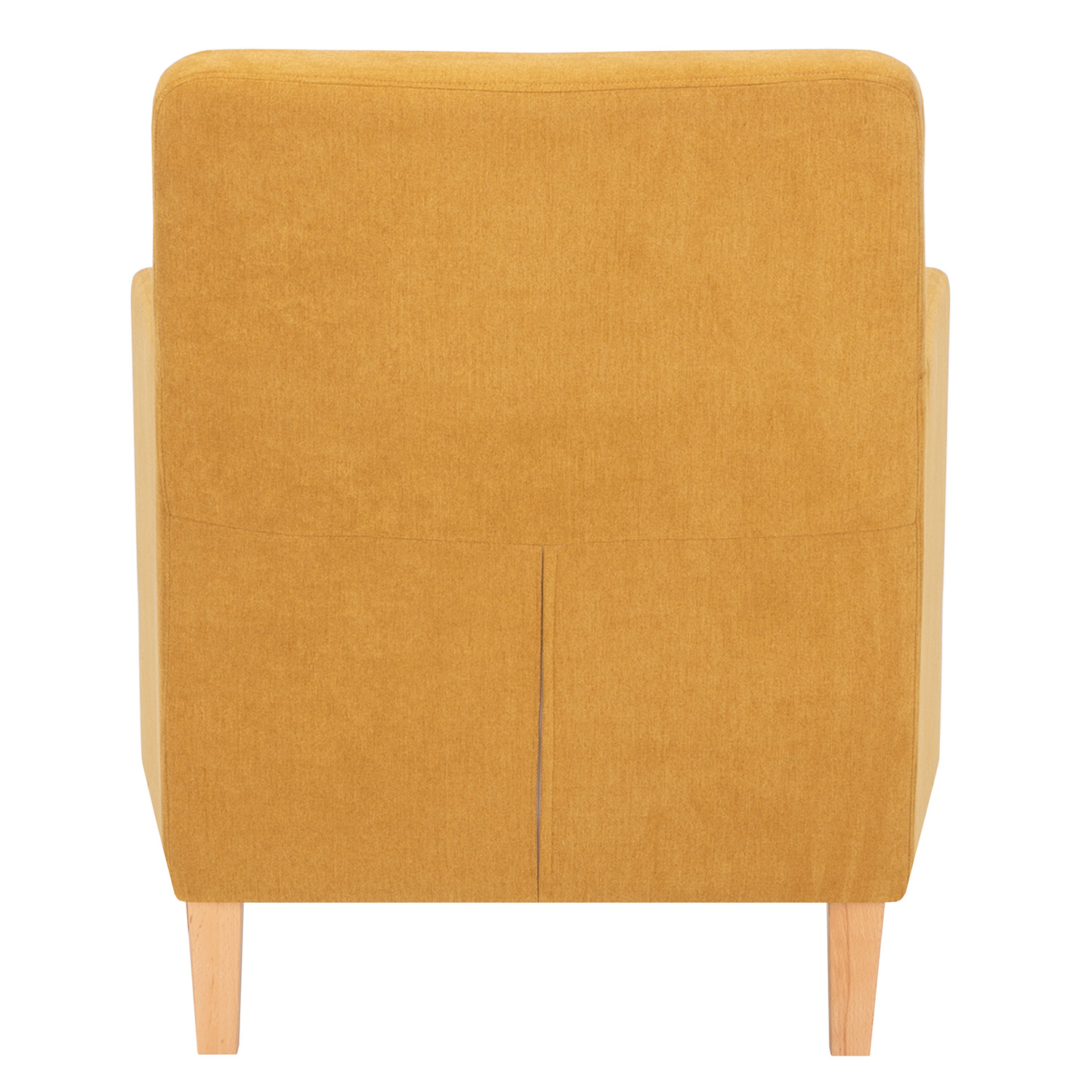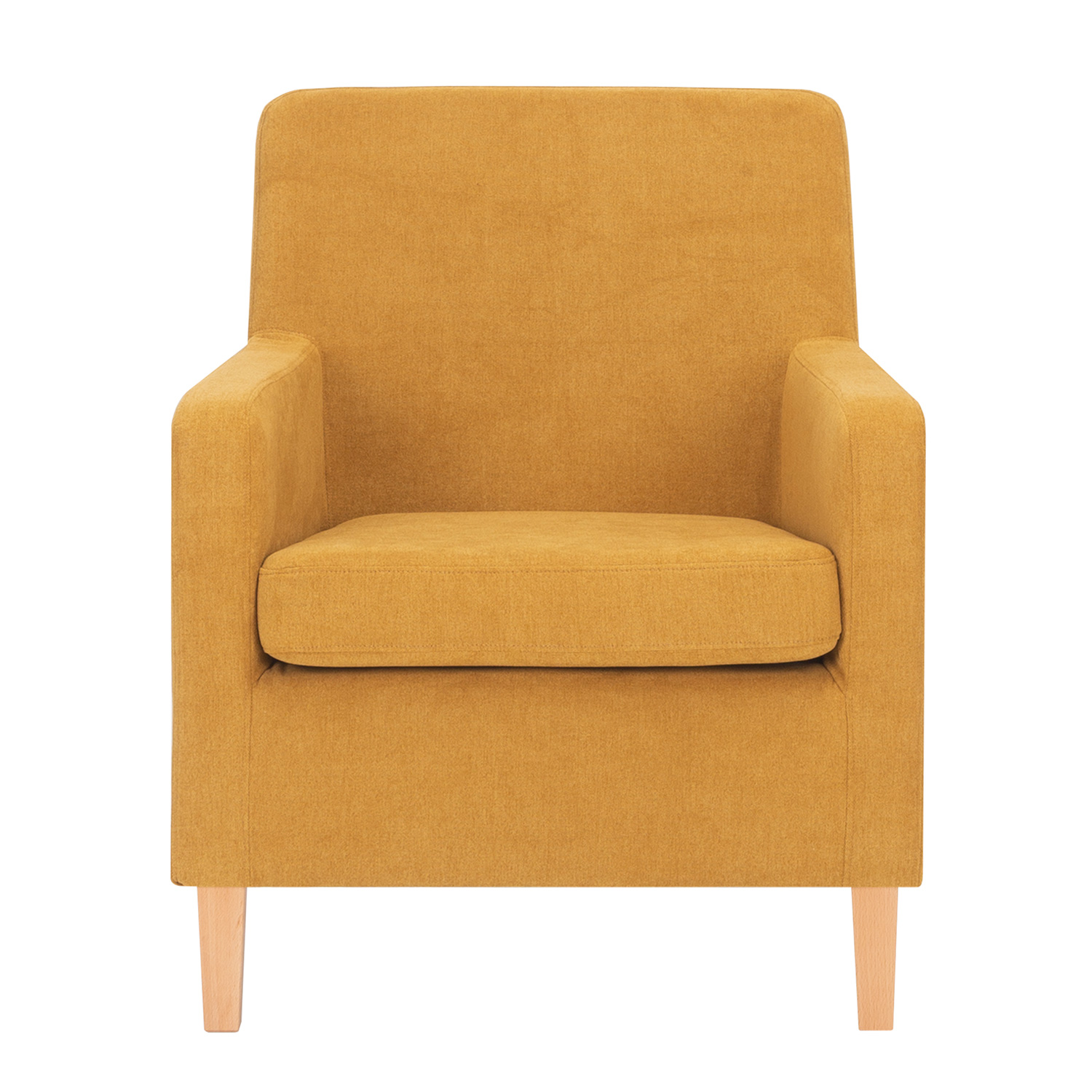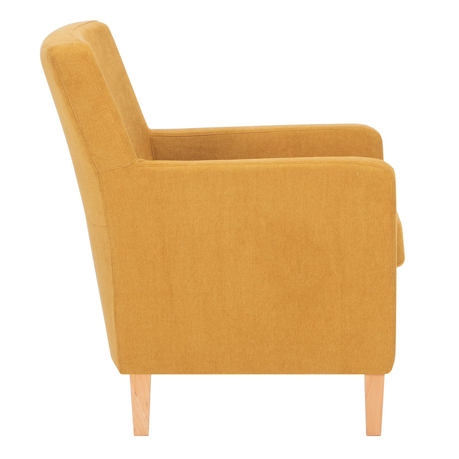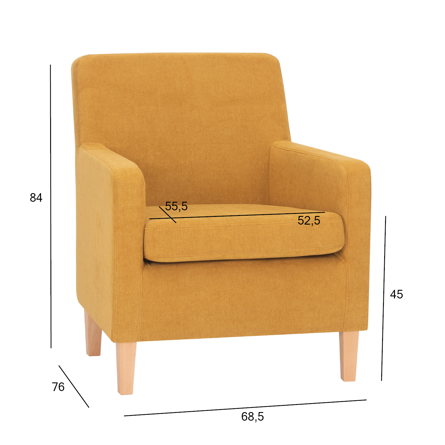 Atraminė kėdė LEENE geltonos spalvos. Sėdynės pagalvėlė aptraukta 130 g/m2 poliesterio audiniu, Martindale 40 000. Užvalkalas nuimamas. Sėdynės pagalvėlė pagaminta iš 100 mm 35 kg/m3 porolono. Kėdės karkasas pagamintas iš medžio, faneros, medžio plaušo plokštės ir medžio drožlių plokštės. Rėmas padengtas porolonu. Kėdė turi zigzaginę pakabą. Kėdė turi keturias beržo kojas, kurių aukštis 14 cm. Porankių pločio plotis yra 8 cm. Sėdimosios dalies aukštis 45 cm, sėdimosios dalies plotis 52,5 cm, sėdimosios dalies gylis 55,5 cm. Gaminio matmenys yra 68,5x76xH84cm. Gaminys pagamintas ES.