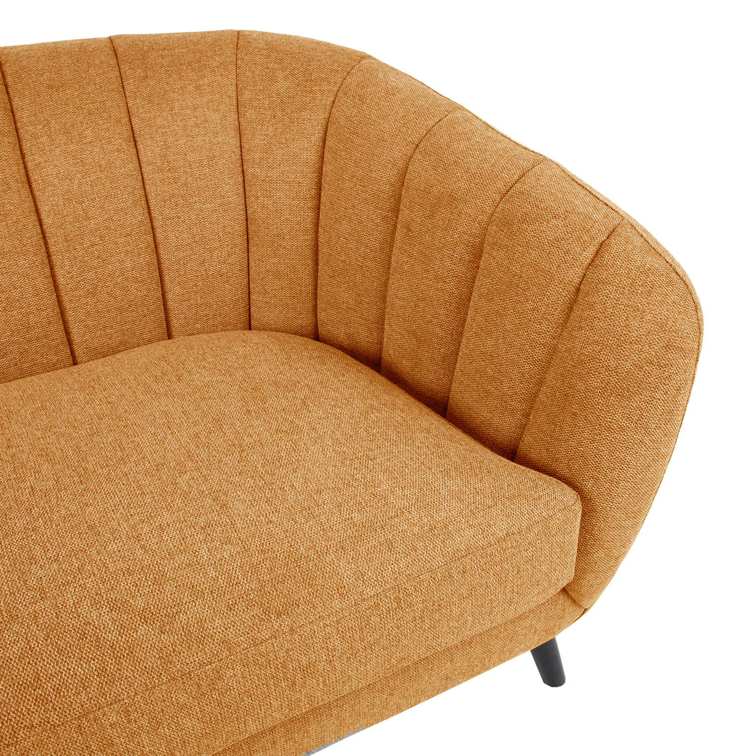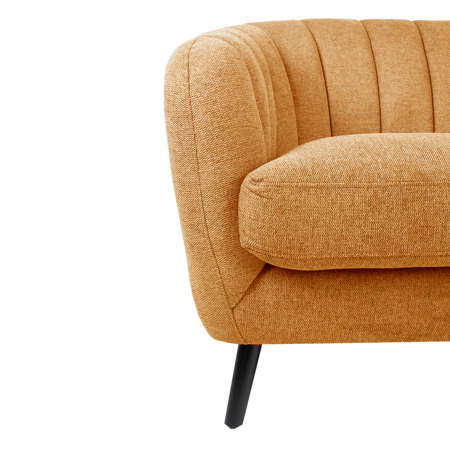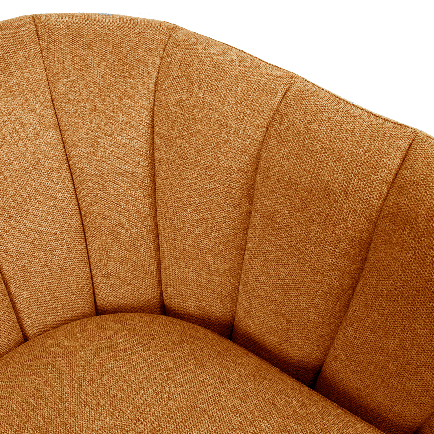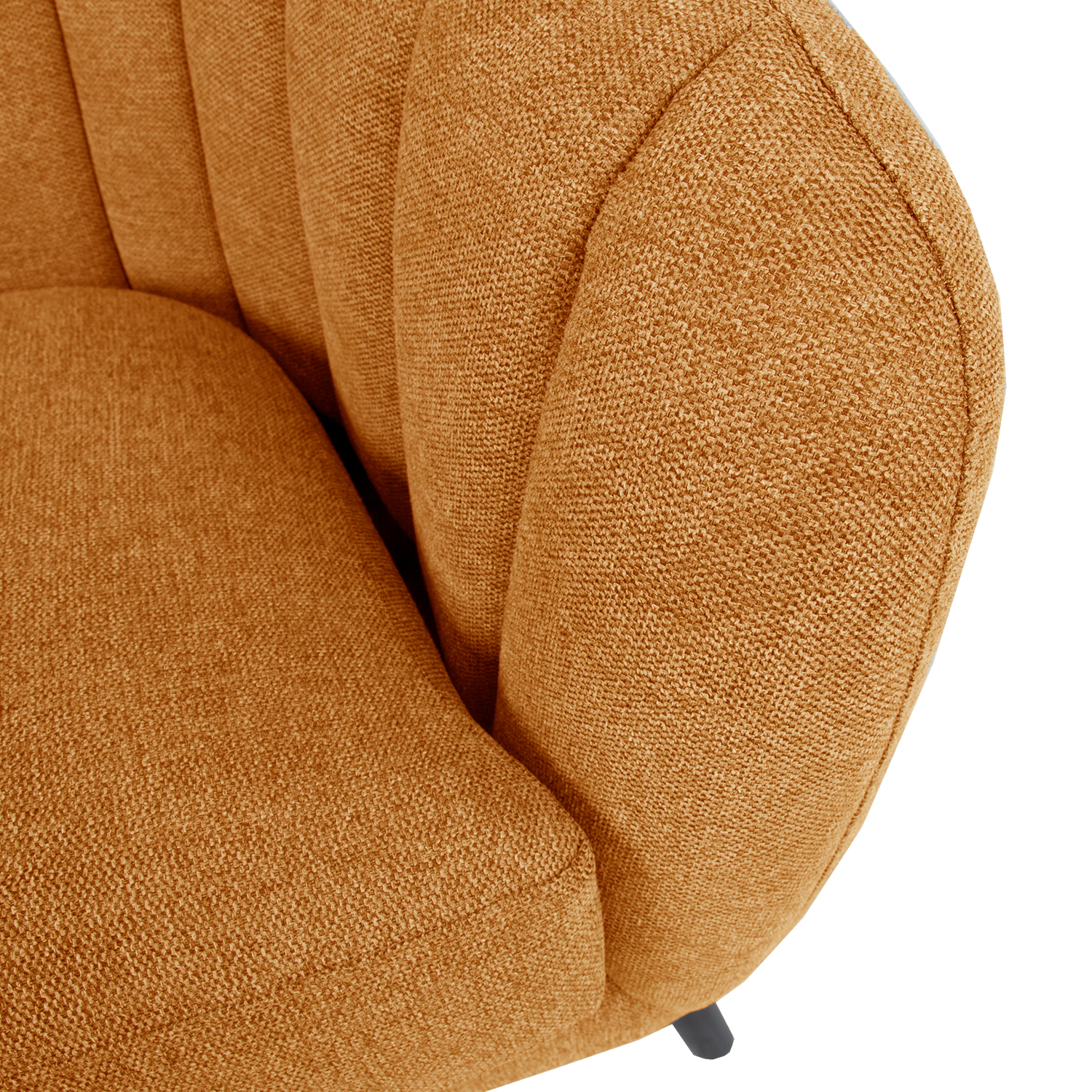 Pagalbinė priemonė MELODY oran˛. Fotelis aptrauktas 100 % poliesterio audiniu. Rėmas pagamintas iš medžio ir faneros. Fotelis turi kišeninę pakabą. Apmušalas: putų poliuretanas. Fotelio kojos pagamintos iš medžio. Sėdynės aukštis 46 cm, sėdynės gylis 57 cm, sėdynės plotis 67 cm priekyje ir 52 cm gale. Gaminio matmenys 100x88xH76 cm.