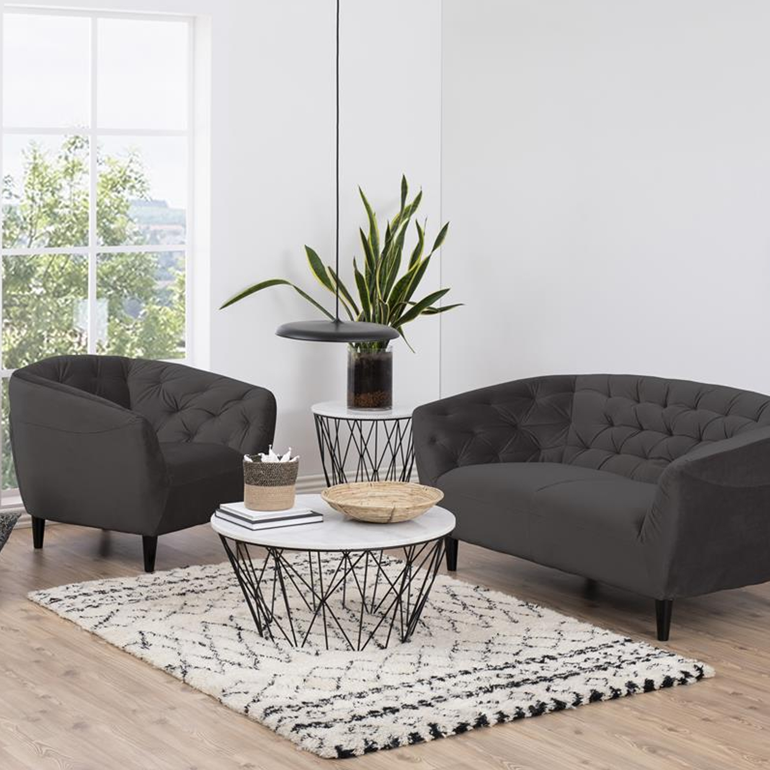 Fotelis RIA 83x97xH79cm, užvalkalas: audinys, spalva: tamsiai pilka, kojos: kaučiukmedis, spalva: juoda.