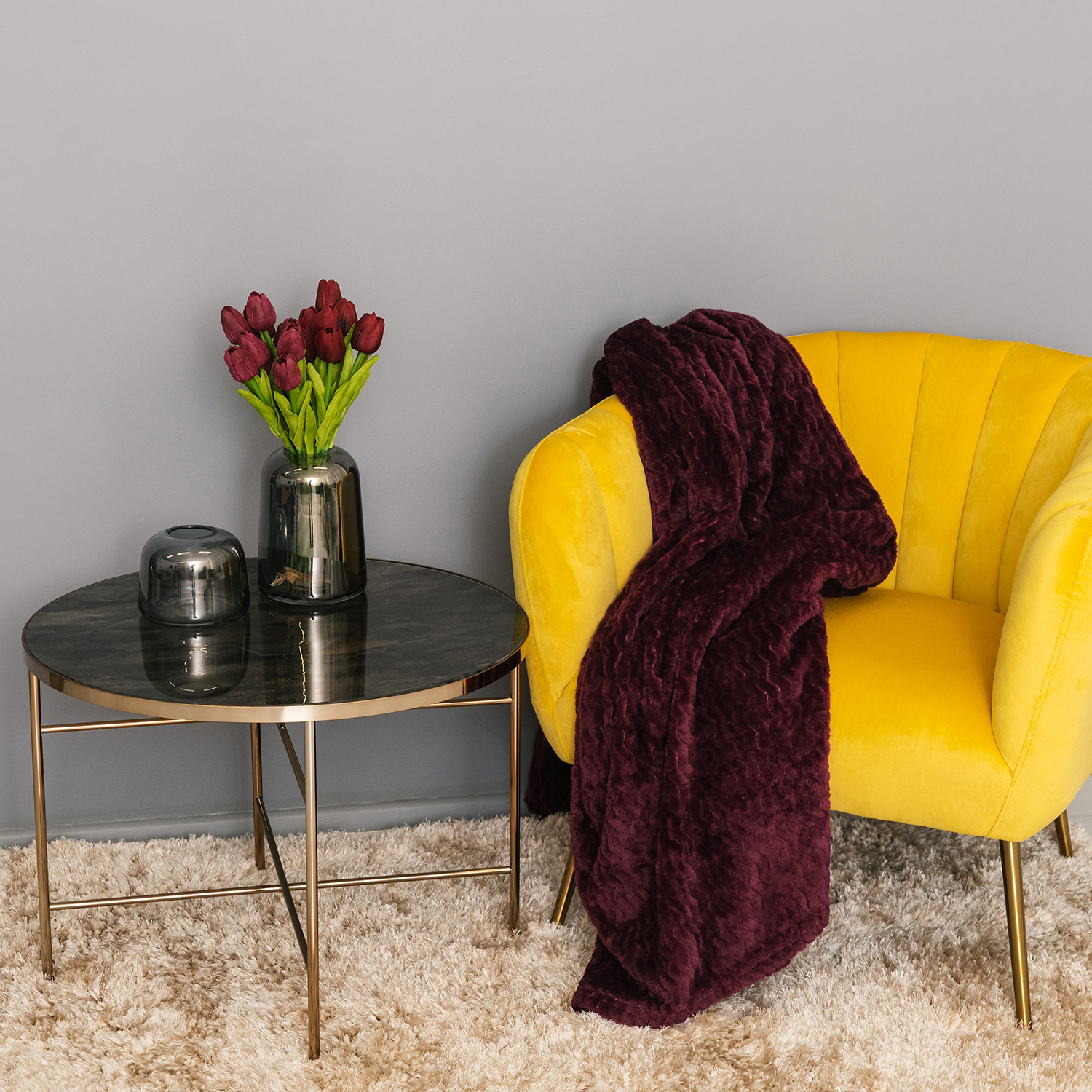 Paramos kėdė TUCKER geltonos spalvos. Atraminė kėdė aptraukta geltonu aksomo audiniu. Užvalkalo medžiaga – 100 % poliesterio audinys. Atraminė kėdė turi aukso spalvos nerūdijančio plieno kojas. Gaminio matmenys 78x71xH69 cm.